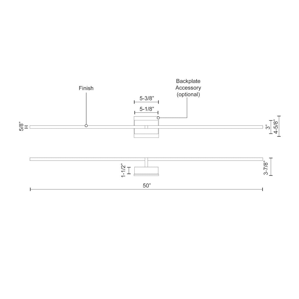 Dual square profile linear aluminum arms with rectangular wall mount. Inset opal polymeric diffusers. Finely textured plate or powder-coated finish. Wall emitting lights with rotational adjustment.