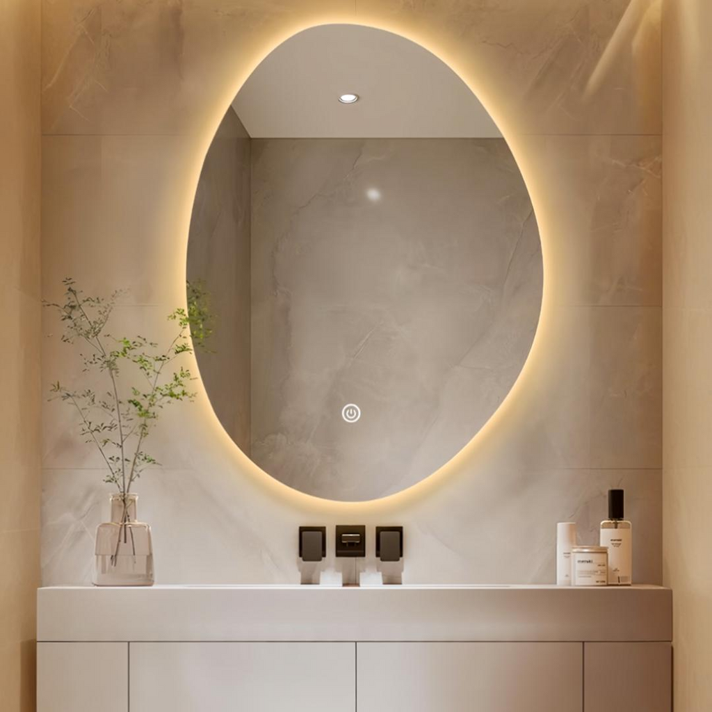 ESPEJO CON ILUMINACION LED, DIMEABLE, 12W, INTERRUPTOR TACTIL PARA ENCENDIDO/APAGADO Y CAMBIO DE LUZ CCT 30K,40K,60K, 100-240V 50-60HZ, ACABADO CROMO + MATERIAL VIDRIO.