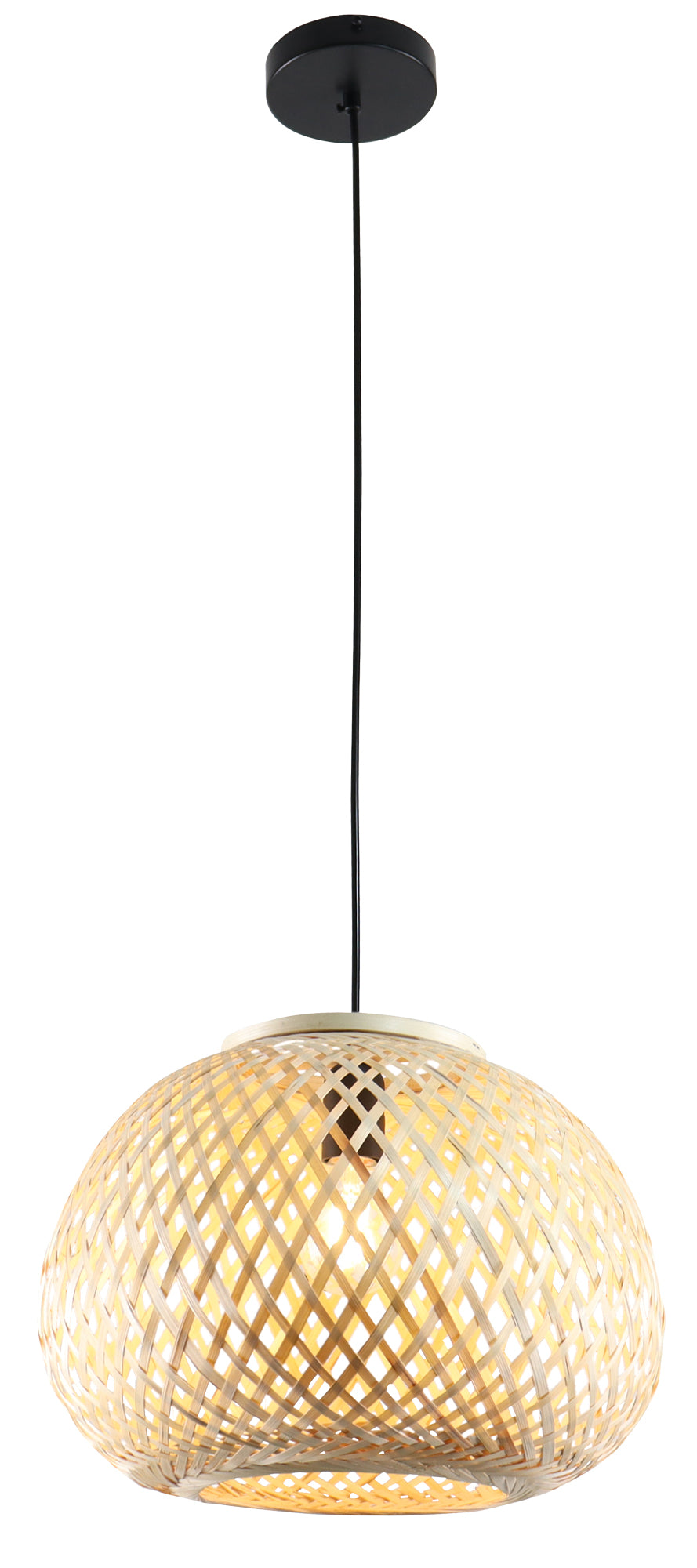 LÁMPARA DE TECHO COLGANTE 1XE27-40W (NO INCLUIDO) GRADO DE PROTECCION IP20, ACABADO BAMBU+ NEGRO, DIMENSIONES: 1.2MTS DE CABLE MATERIAL BAMBU, D-35CM * H-127CM, MARCA HOME DEIGHT.