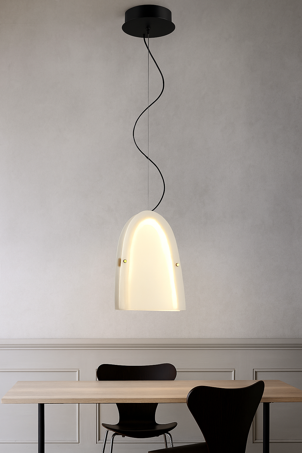 LÁMPARA DE TECHO COLGANTE DECORATIVA LED 10W, TONALIDAD DE 3000K, 110-240V, 50-60HZ, GRADO DE PROTECCION IP20, ACABADO BLANCO + METAL + VIDRIO, DIMENSIONES: W-20CM H-30+120CM, MARCA HOME DELIGHT.