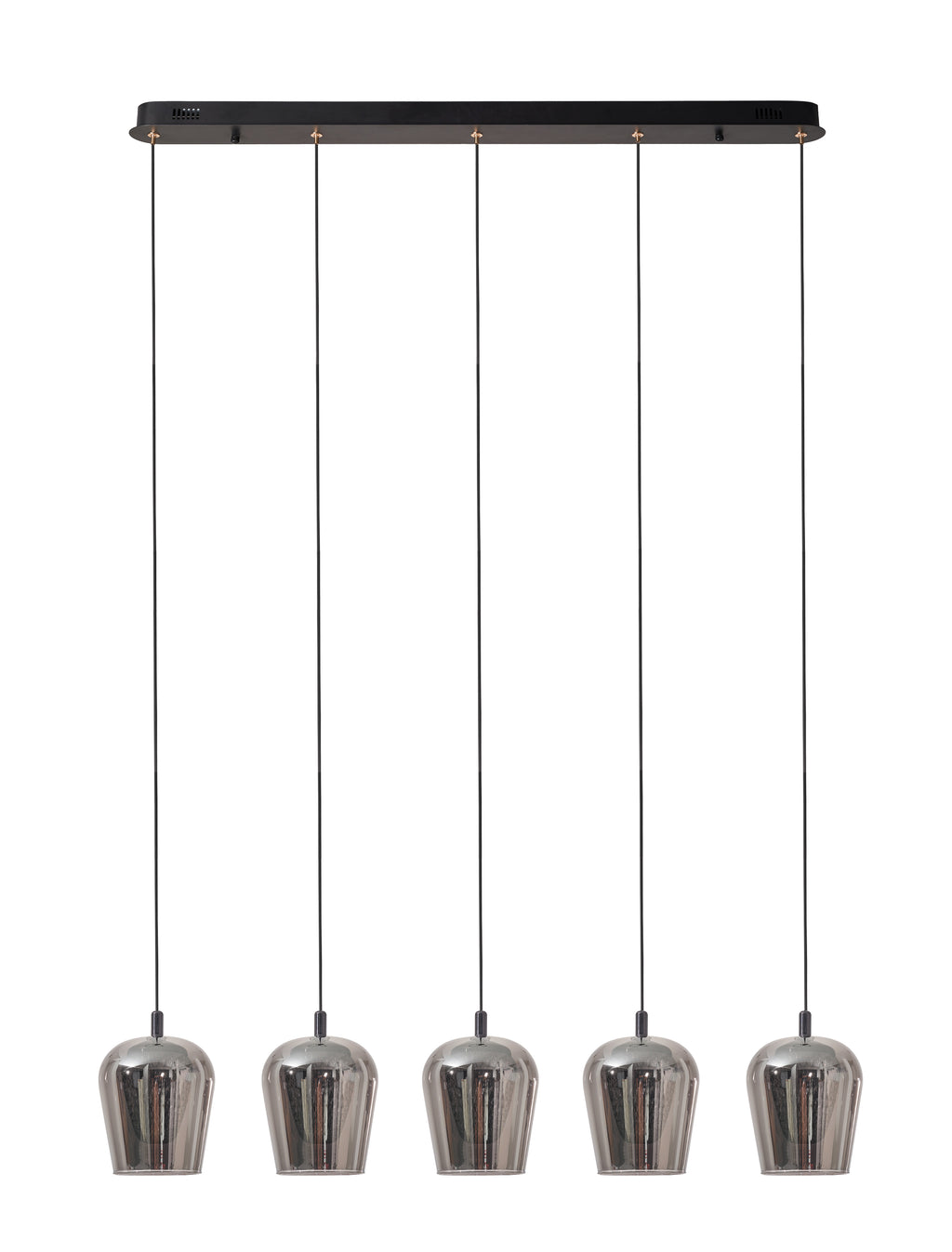 LÁMPARA DE TECHO COLGANTE DECORATIVA LED 22W, TONALIDAD 2700K, 110-240V 50-60HZ, ACABADO NEGRO + VIDRIO SMOKY, GRADO DE PROTECCION IP20, DIMENSIONES: L-97CM E-13CM H-150CM, MARCA HOME DELIGHT.