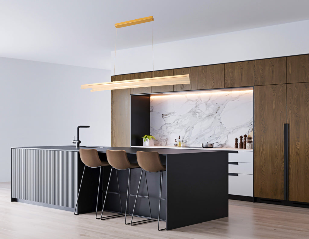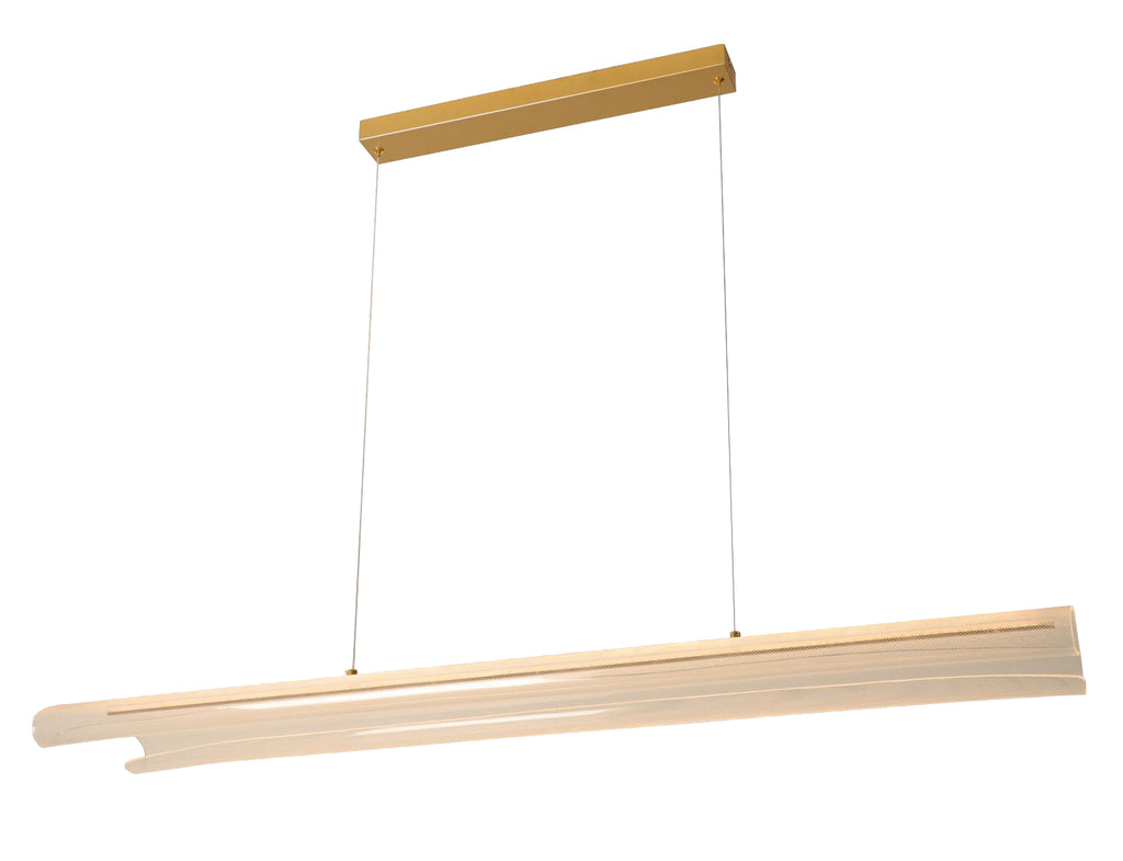 LÁMPARA DE TECHO COLGANTE DECORATIVA LED 37W, TONALIADAD DE 3000K, 110-240V,50-60HZ, GRADO DE PROTECCION IP20, ACABADO DORADO + MATERIAL METAL + ACRILICO, DIMENSIONES: L-120CM W-24CM H-150CM, MARCA HOME DELIGHT.