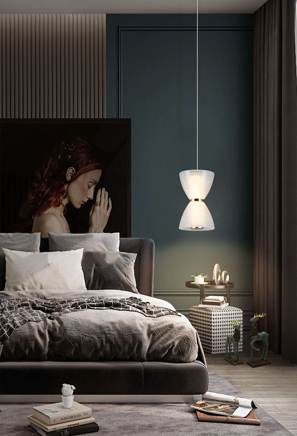 LÁMPARA DE TECHO COLGANTE DECORATIVA LED 7W, INTERRUPTOR PARA AJUSTE DE TONALIDAD DE LUZ CCT 30K, 40K,60K, 110-240V, 50-60HZ, ACABADO BLANCO + METAL + VIDRIO, DIMENSIONES: D-14CM H-22CM +120CM, GRADO DE PROTECCCION IP20, MARCA HOME DELIGHT.