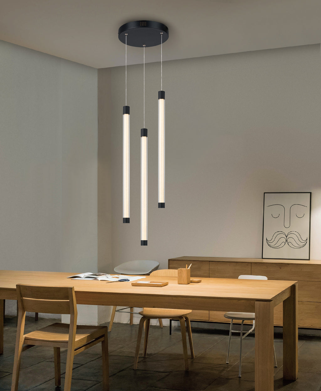 LÁMPARA DE TECHO COLGANTE DECORATIVA MODERNA LED 16W, TONALIDAD DE 3000K, 100-240V, 50-60HZ, GRADO DE PROTECCION IP20, ACABADO NEGRO + ACRILICO + DIE CAST ALUMINUM + DIMENSIONES: D-25CM H-55+150CM, MARCA HOME DELIGHT.