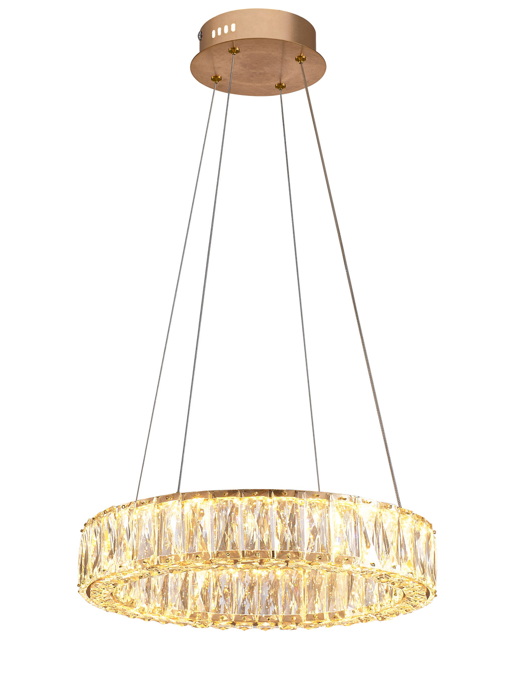 LÁMPARA DE TECHO LED DE CRISTAL K9, 50W, TONALIDAD DE 3000K, 110-240V, 50-60HZ, GRADO DE PROTECCION, IP20, ACABADO DORADO.