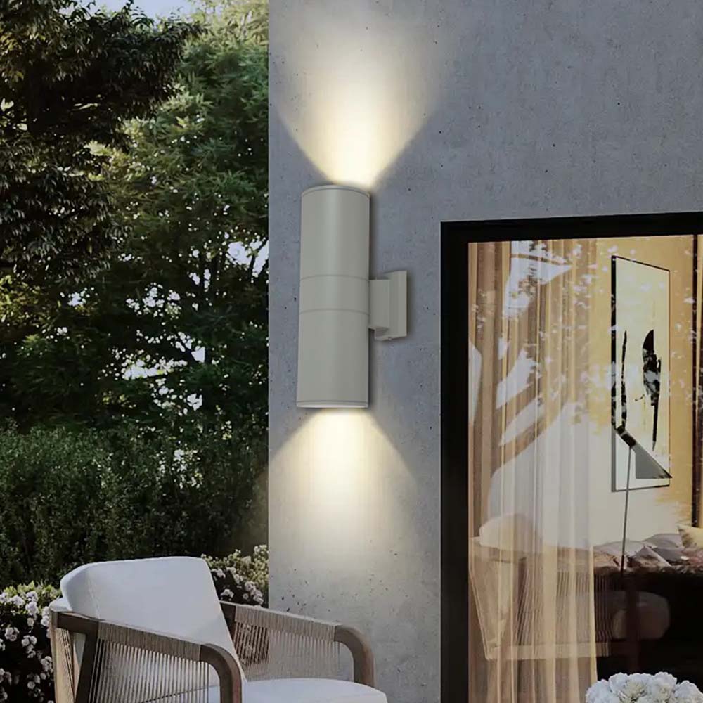 LÁMPARA DE PARED EXTERIOR DECORATIVA ILUMINACION UP&DOWN 2XE27- 100W - PAR38, 100-240V, 50-60HZ , GRADO DE PROTECCION IP54, ACABADO GRIS.
