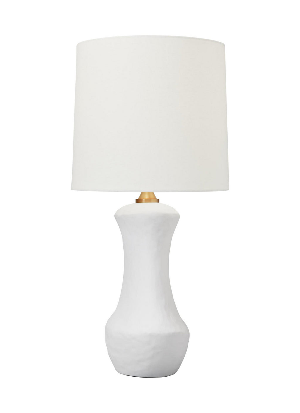Hand crafted in ceramic the Bone one light table lamp by Hable has a unique shaped base and a black or white finish, making the Bone table lamp an iconic design. Its crisp white shade and brass hardware perfectly accent the delicately detailed art work. Bone offers an enduring presentation of the modern form that will competently revitalize your decor space. A white linen shade caps this piece off with an understated style perfect for ensembles from traditional to contemporary.