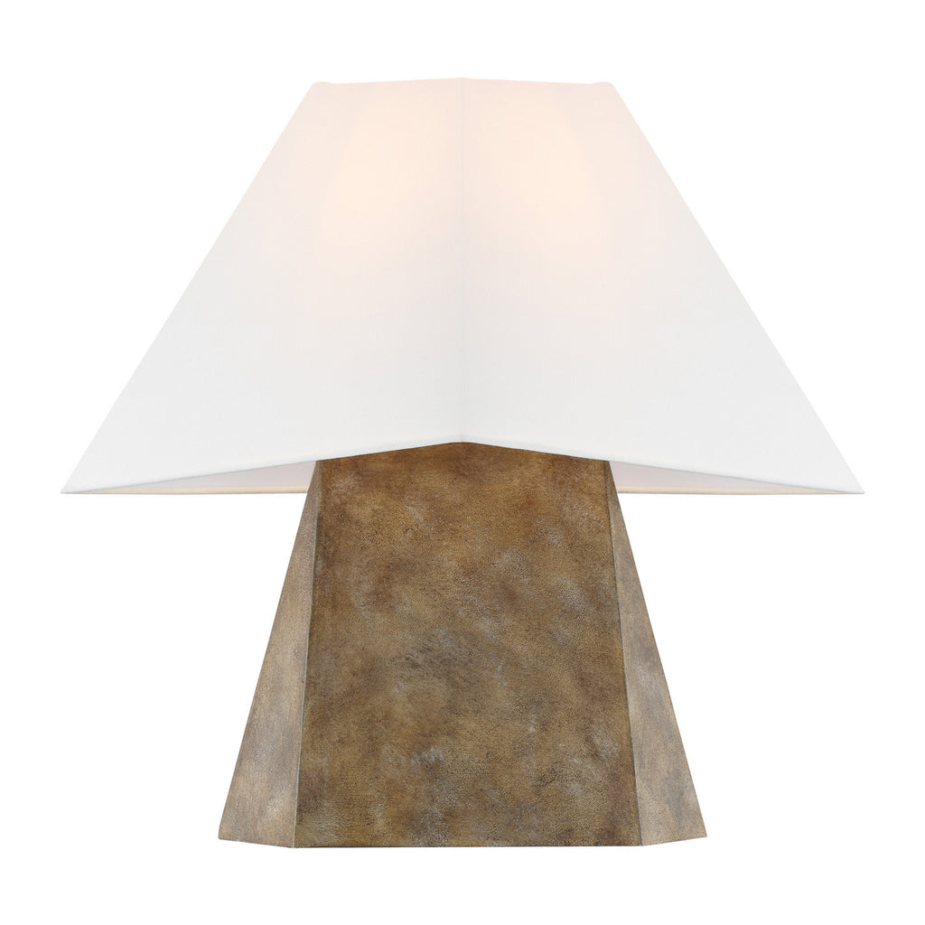 The Herrero table lamp series lends to the idea of a hand-formed artisan look. Bringing a tonal touch to the desktop or bedside, with a pyramid-style base in three finishes, then paired with a white line fabric shade. Herrero pairs contrasting materials, complementing almost any décor