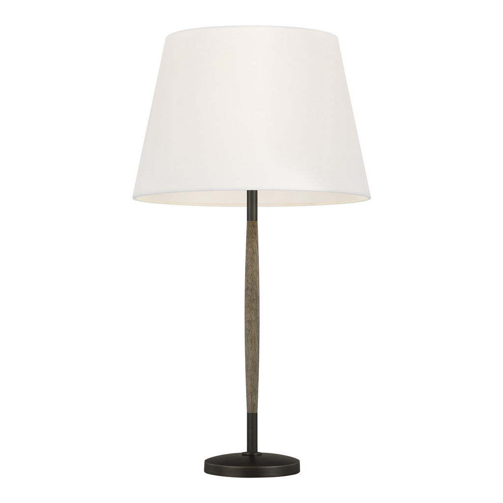 The Ferrelli one light table lamp in weathered oak wood is the perfect way to achieve your desired fashion or functional needs in your home. Ferrelli's rustic, two-toned finish combination of Aged Pewter metal with warm Weathered Oak Wood accents draws from the warmth of nature with a bit of rustic flair. These sleek statement lamps are available in two sizes: a 61" floor lamp or a 18" table lamp, and include a White Linen shade.