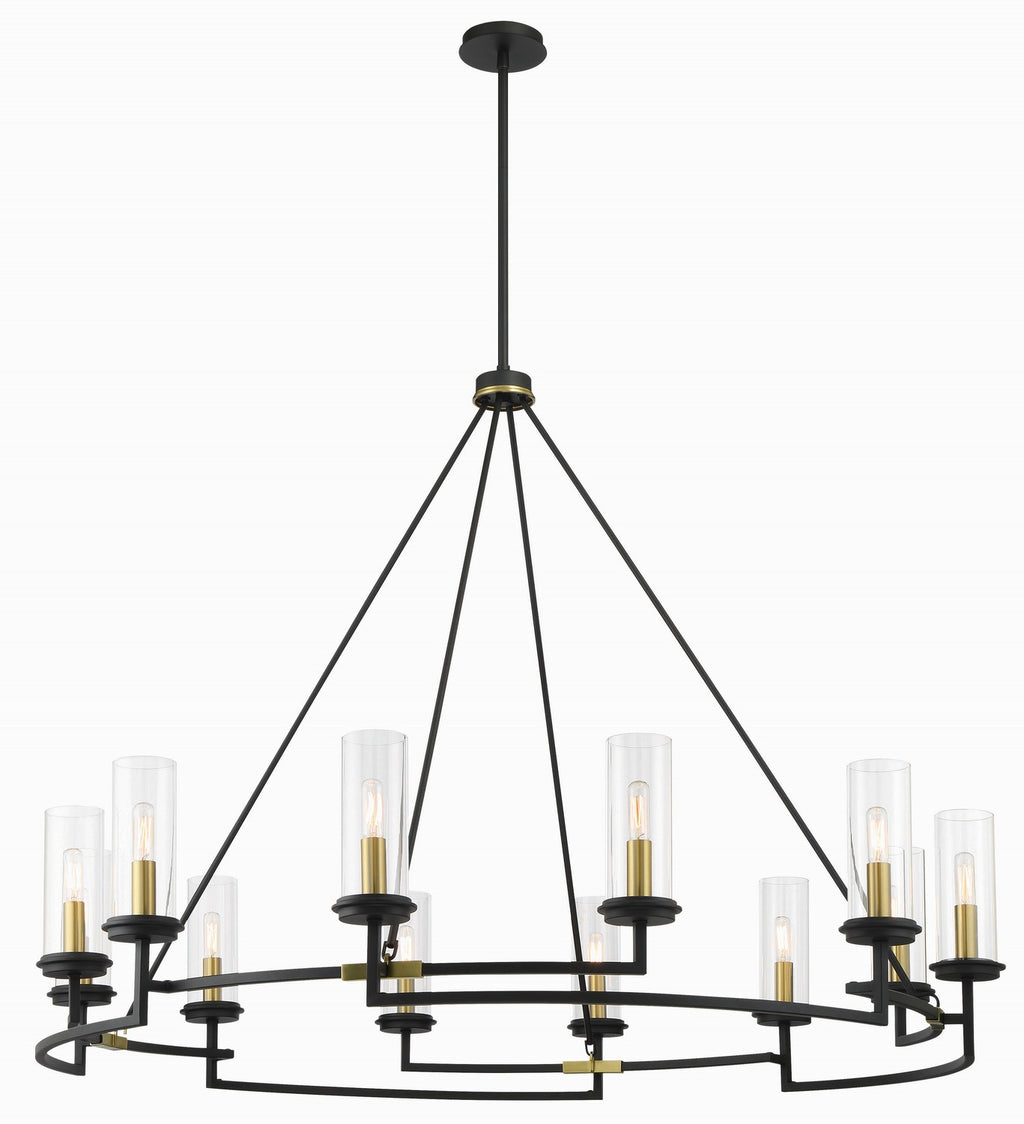 12 Light Chandelier in Sand Coal and Soft Brass Finish with Clear Glass