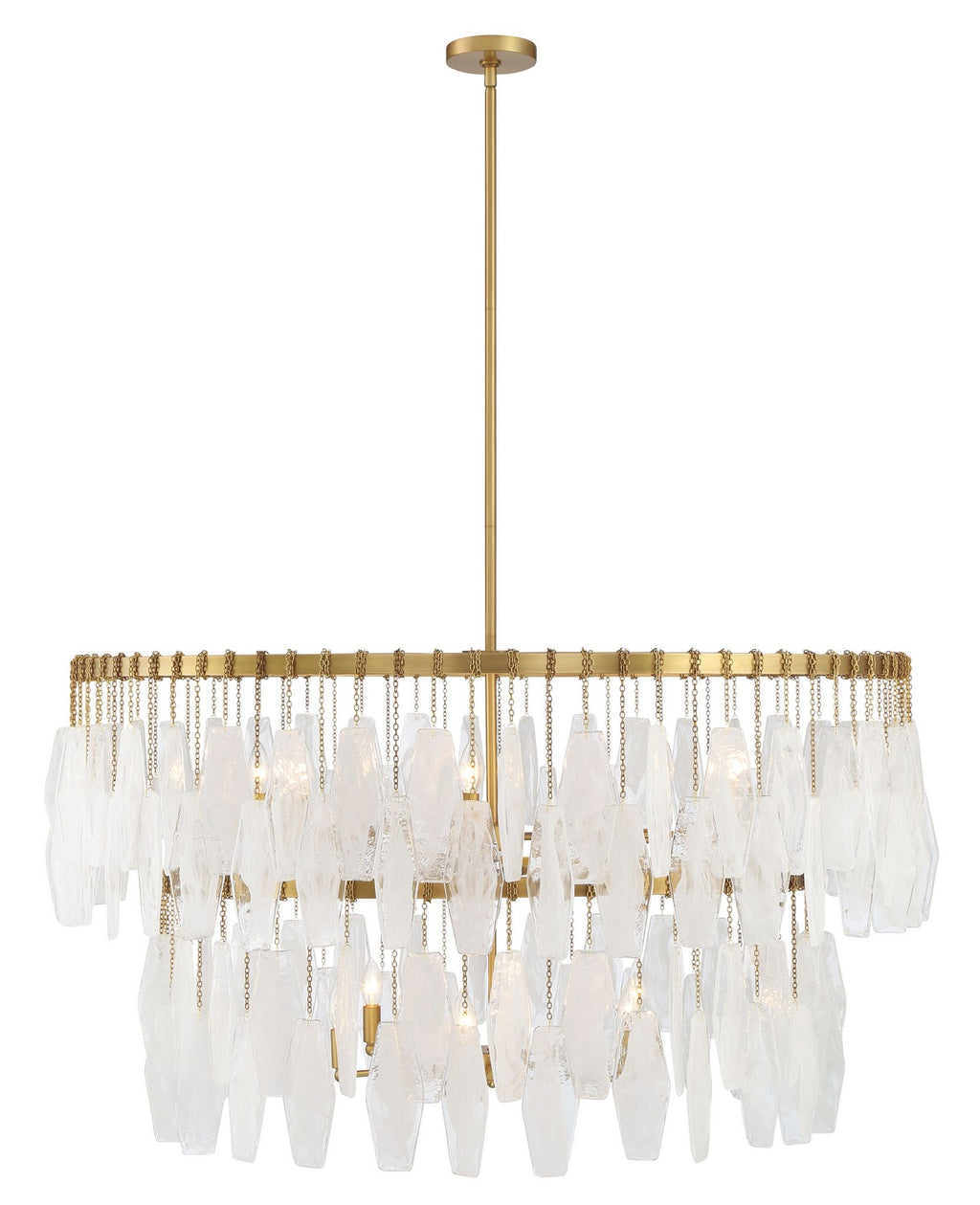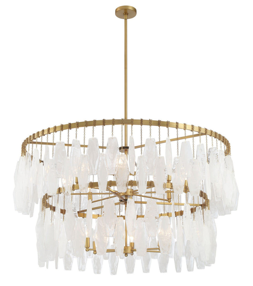 14-Light Pendant - Legacy Brass with White Swirl Glass