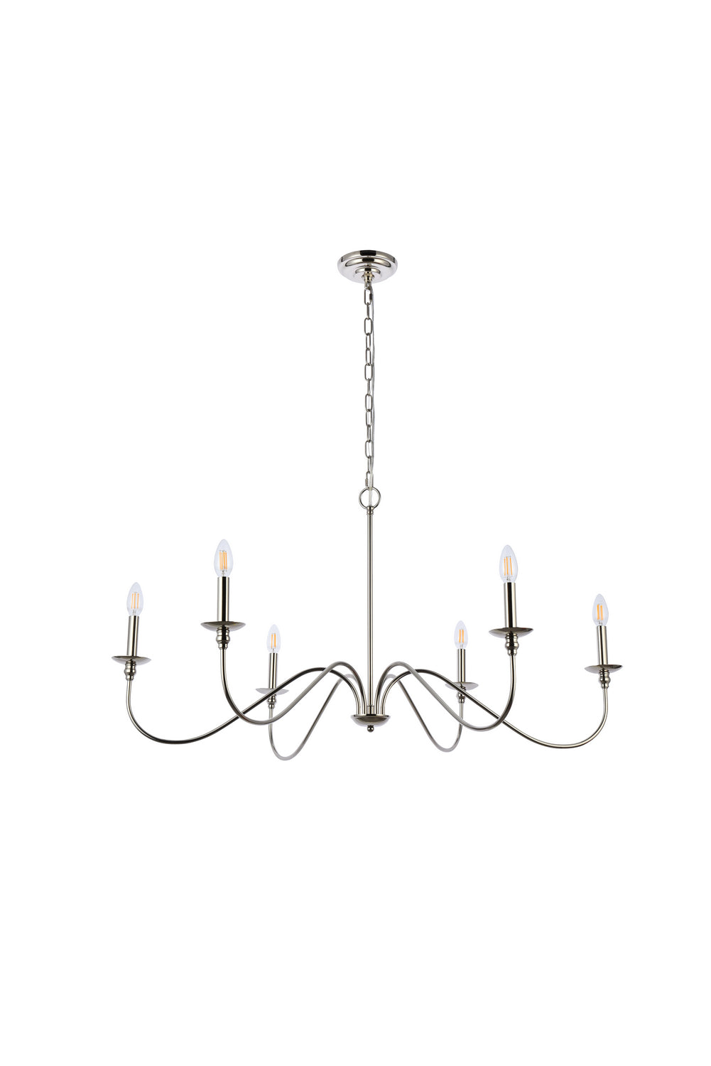 When you need a chandelier to brighten and accentuate a space without visually overpowering it, look to the clean, airy silhouette of the Rohan model. This tastefully simple fixture is Noteworthy for its understated beauty in a relatively large 48 inch span, with six gracefully undulating arms reaching wide to support petite bobèches and candelabra-style stems (bulbs Not included).