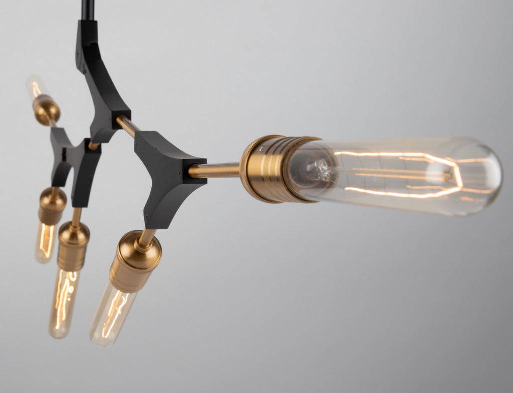 Organically shaped like tree branches, the Filiali collection 5 light chandelier features a black frame with harvest brass accent and socket covers. Can be directionally configured (arms slightly adjustible with allen key)