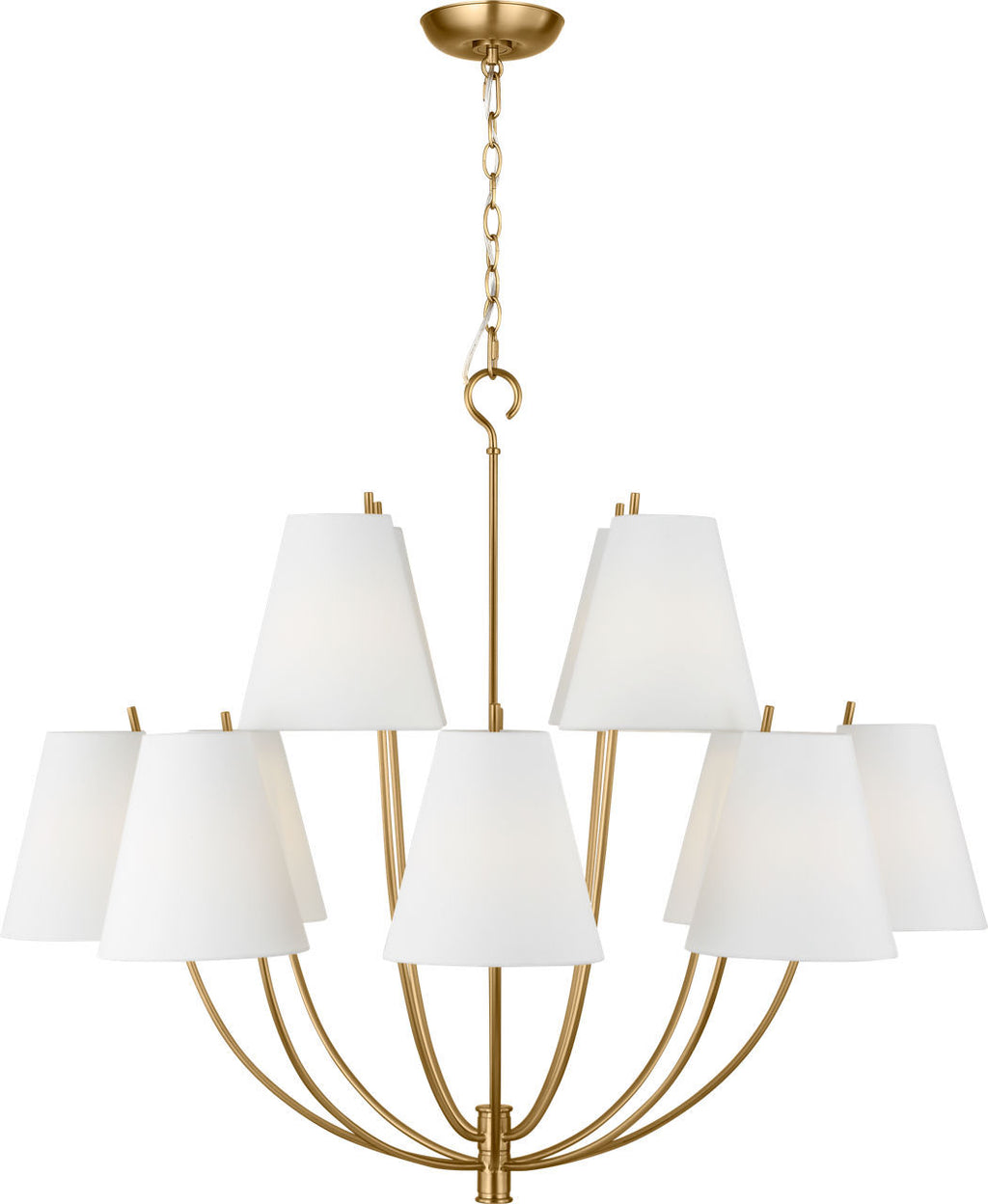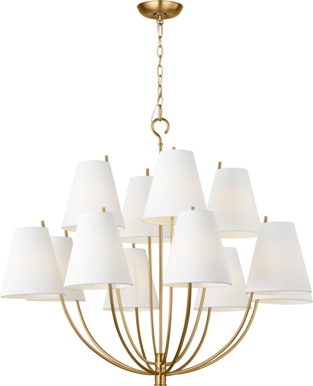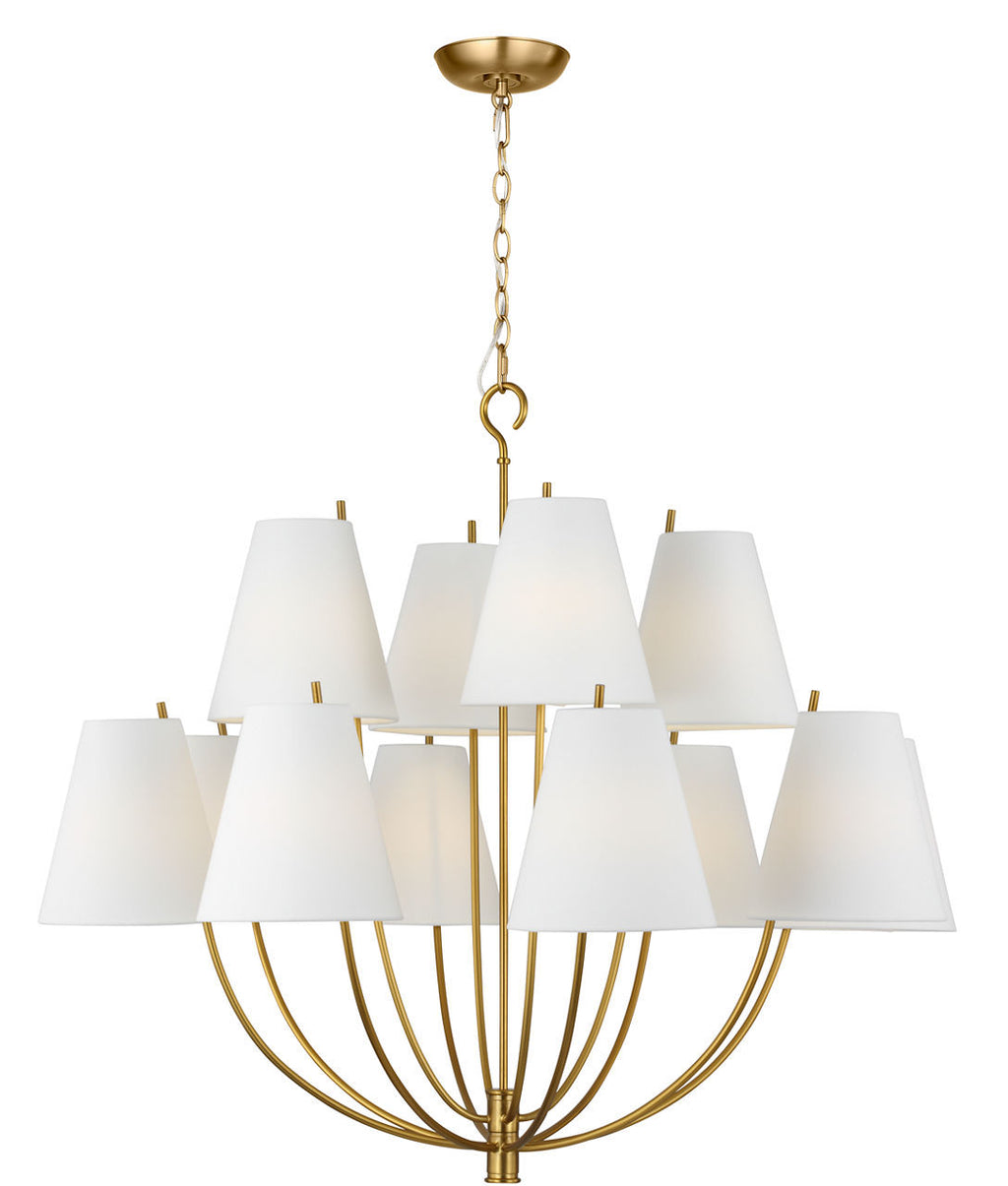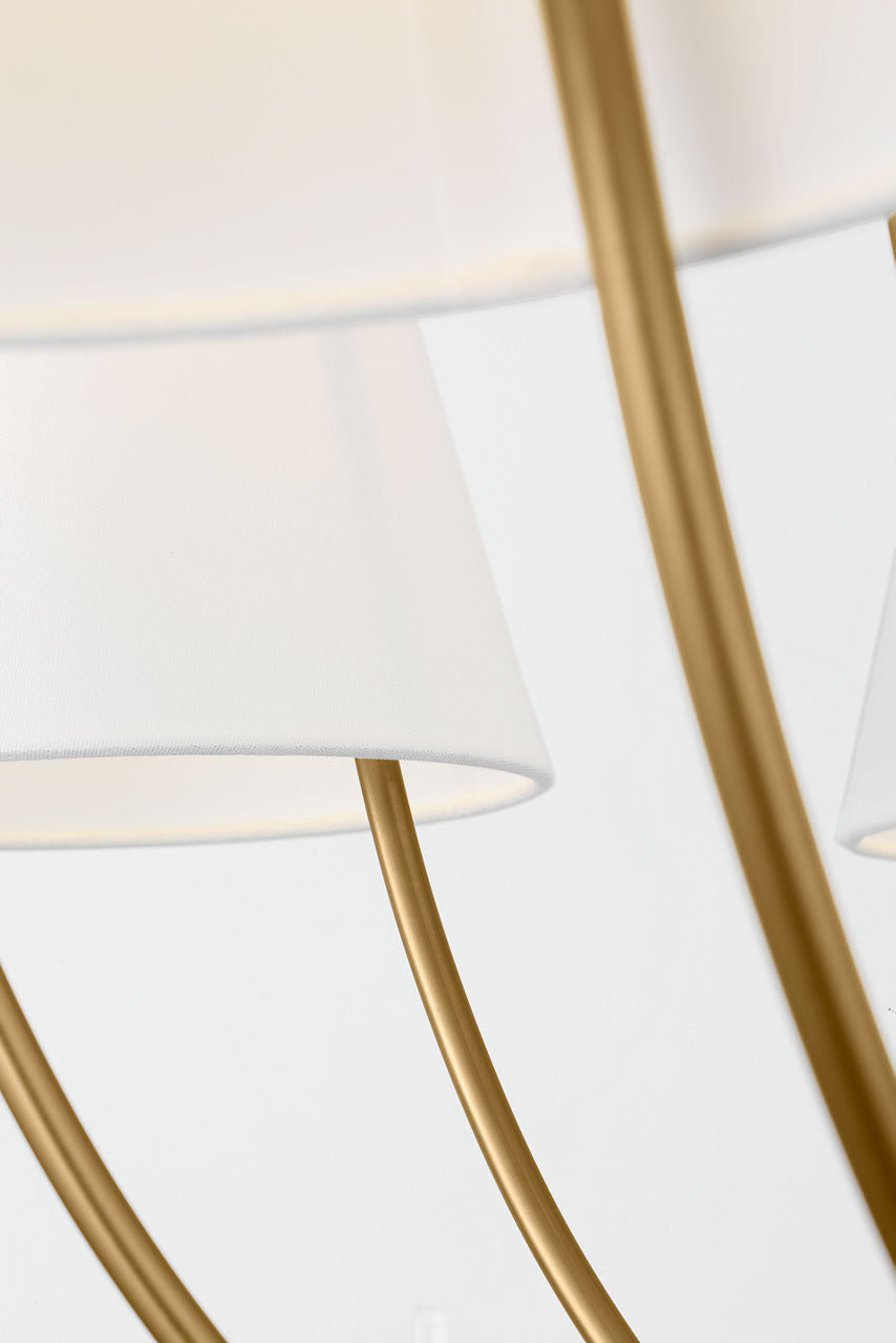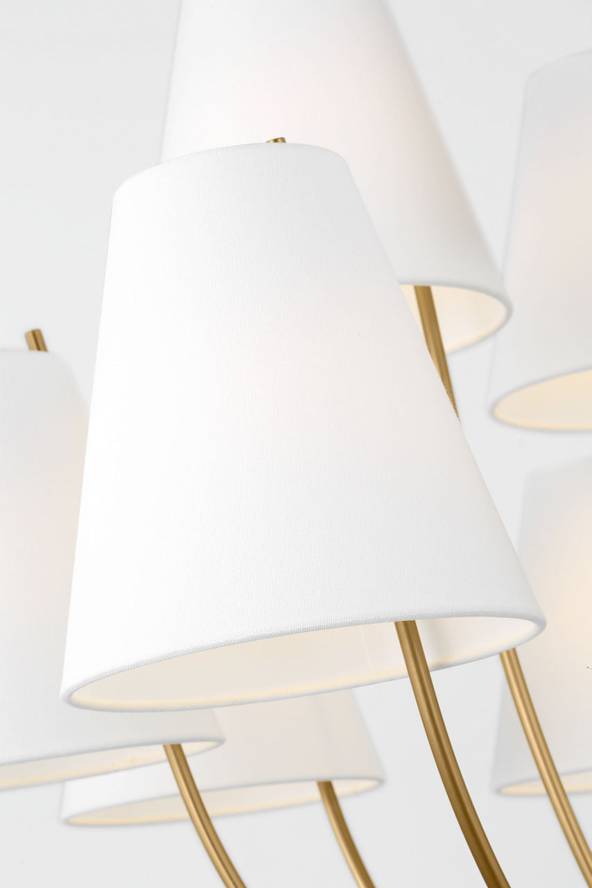 The Marina 40" Chandelier by Chapman & Myers is the boldest expression of the collection's nautical inspiration. Designed with a frame that recalls the shape of a boat hull, its two-tiered arms extend through the shade and rise above it—adding sculptural depth and visual movement. With its expansive scale, the 40" chandelier is ideal for great rooms, dining areas, and large foyers, where its layered silhouette and clean lines create a commanding yet elegant presence. Marina reimagines maritime structure as refined lighting, offering a statement piece that's both grounded and graceful.