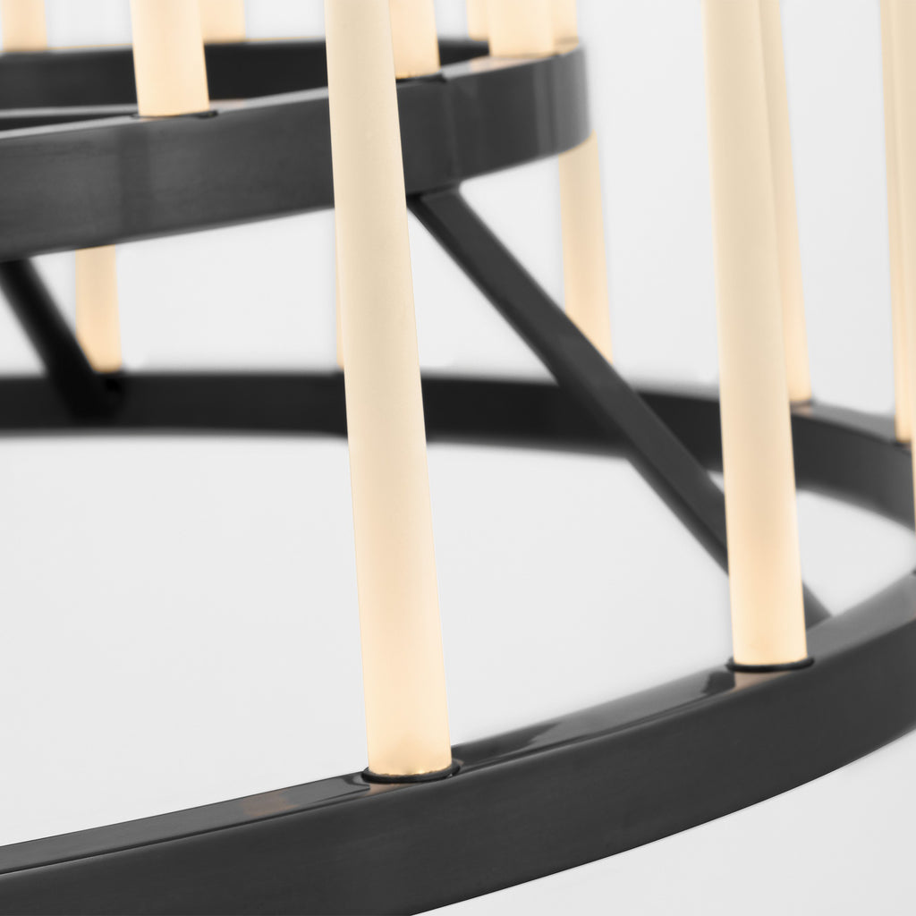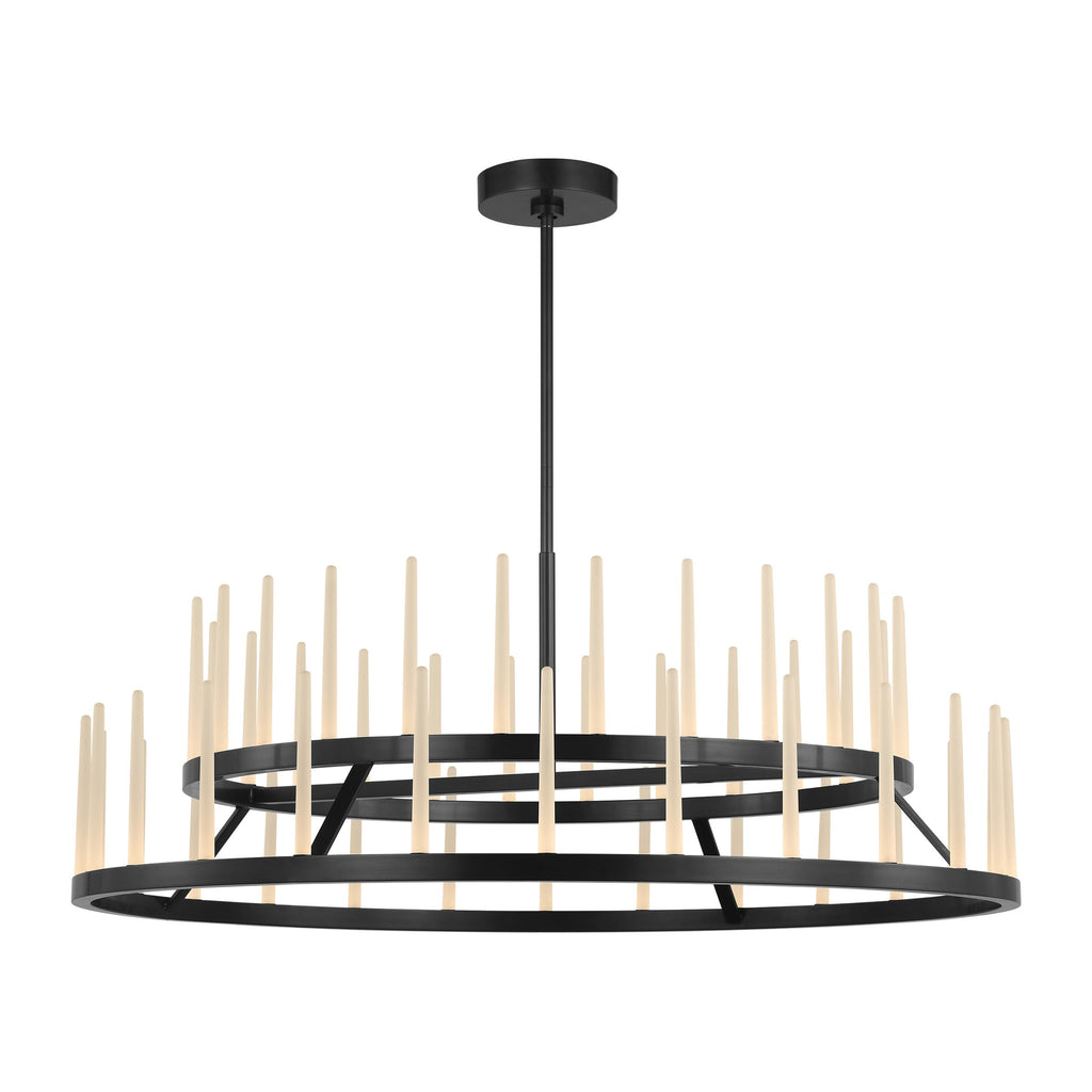 Designed by Sean Lavin, the Sagrada 49 Two-Tier Chandelier is built on a circular frame supporting rows of solid crystal tapers arranged with accuracy. Each rod is softly etched to diffuse the illumination from individual light sources, producing an even glow across the form. The 49" profile offers a refined balance of scale and proportion, making it well-suited for living rooms, formal dining areas, or double-height foyers. Every detail is considered: the precision of the metalwork, the balance of taper and proportion, the quiet discipline of repetition.