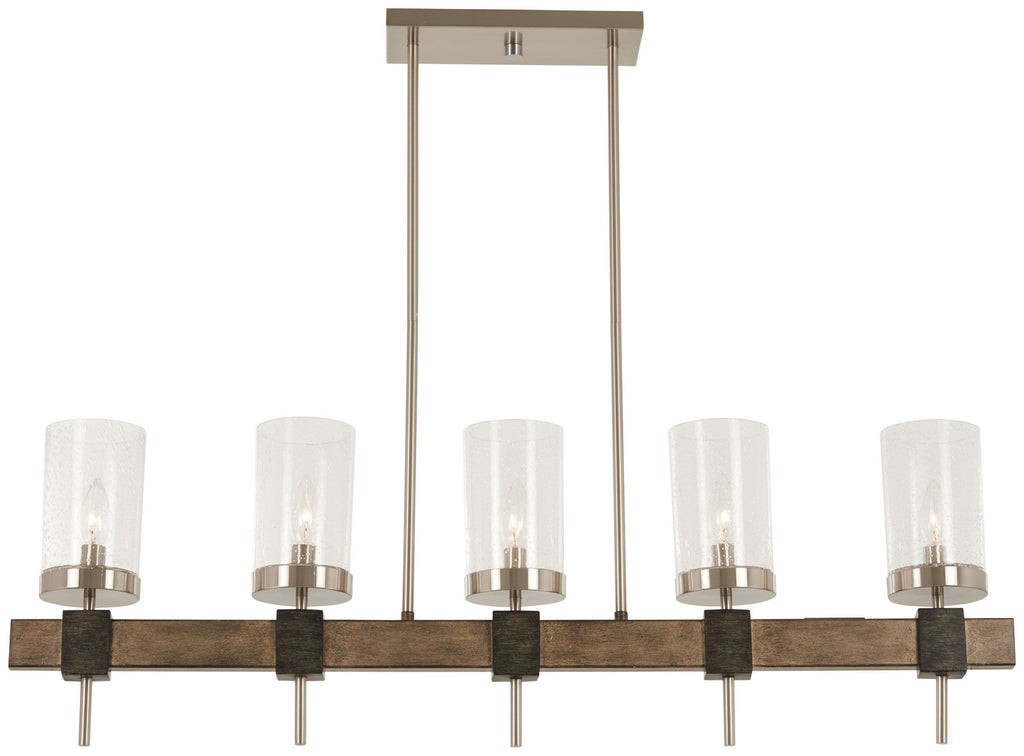 5 Light Island in Stone Grey with Brushed Nickel Finish with Clear Seeded Glass