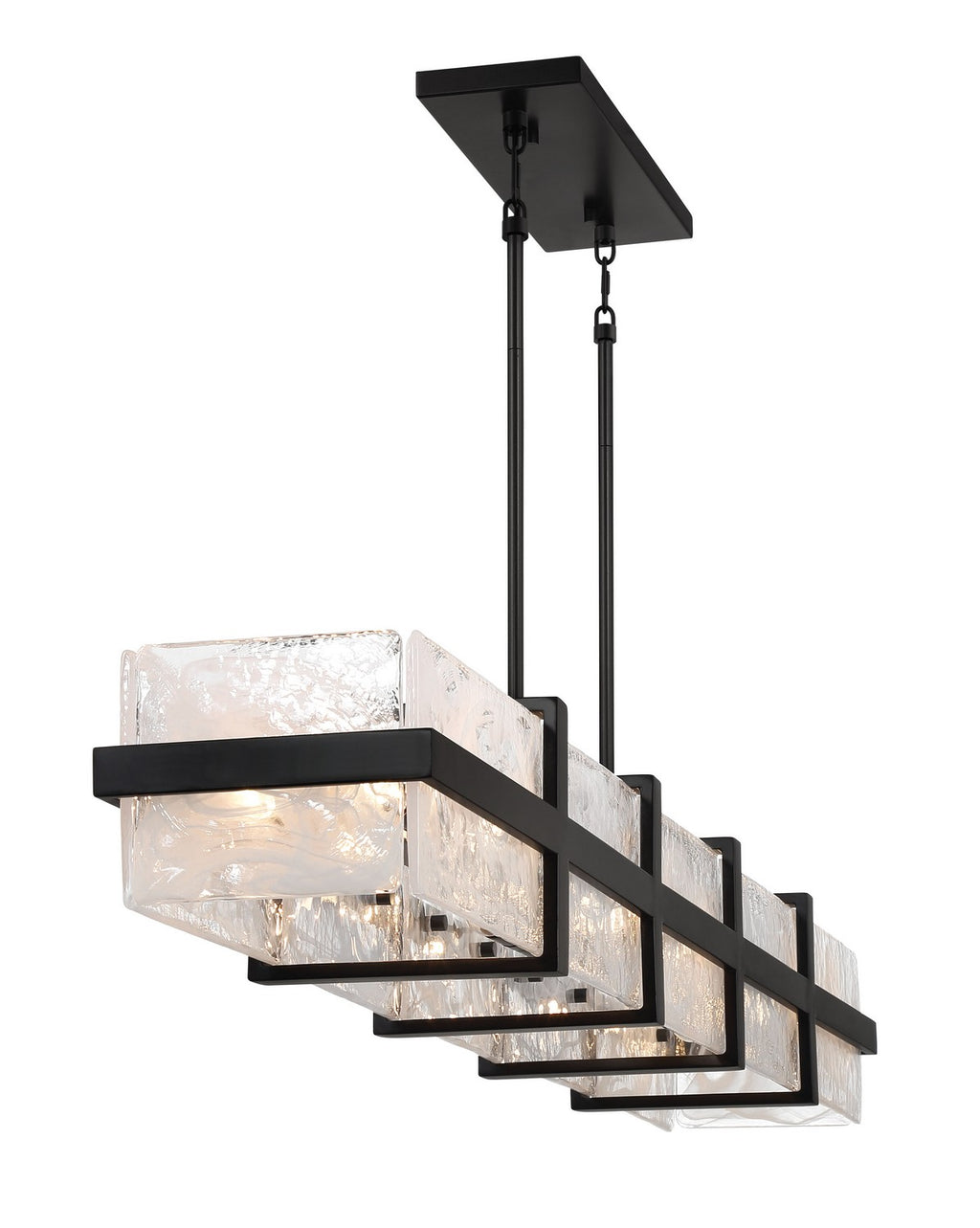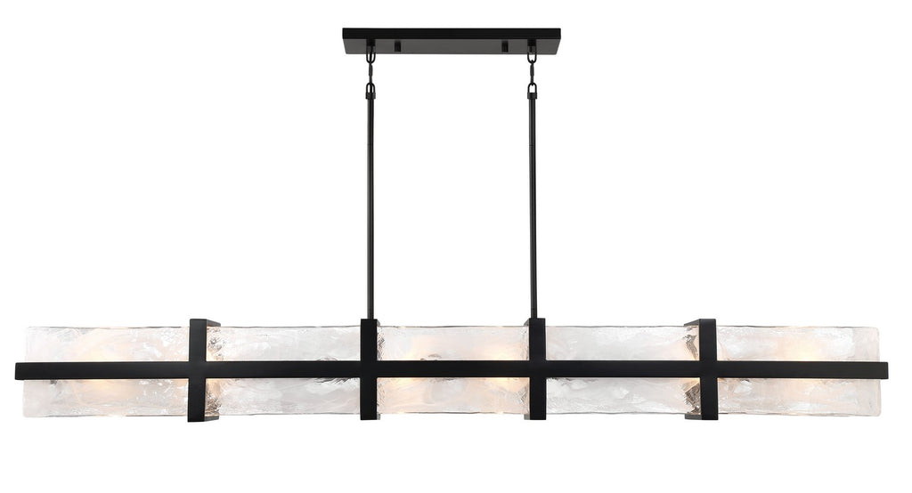 60" 12 Light Island with Cloud Glass in a Coal Black Finish