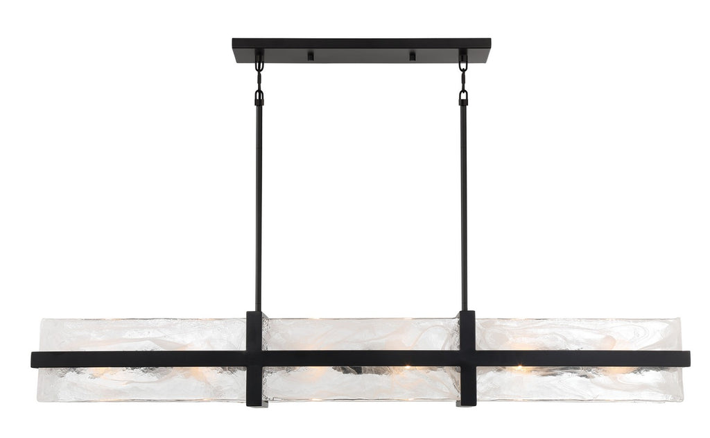 48" 12 Light Island with Cloud Glass in a Coal Black Finish