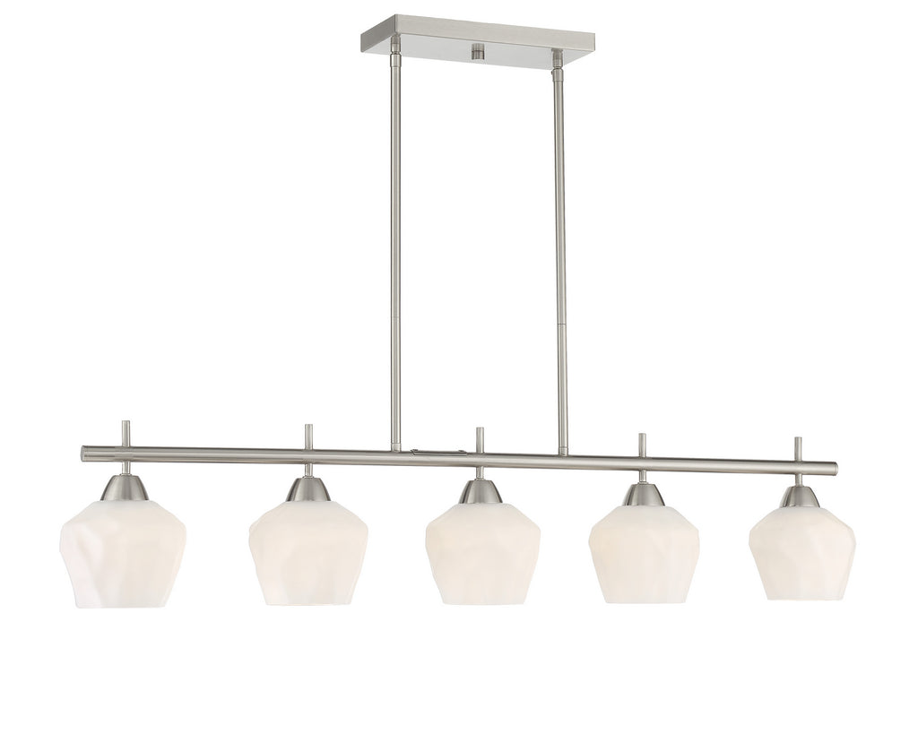 5 Light Island in Brushed Nickel Finish With Etched Opal Glass