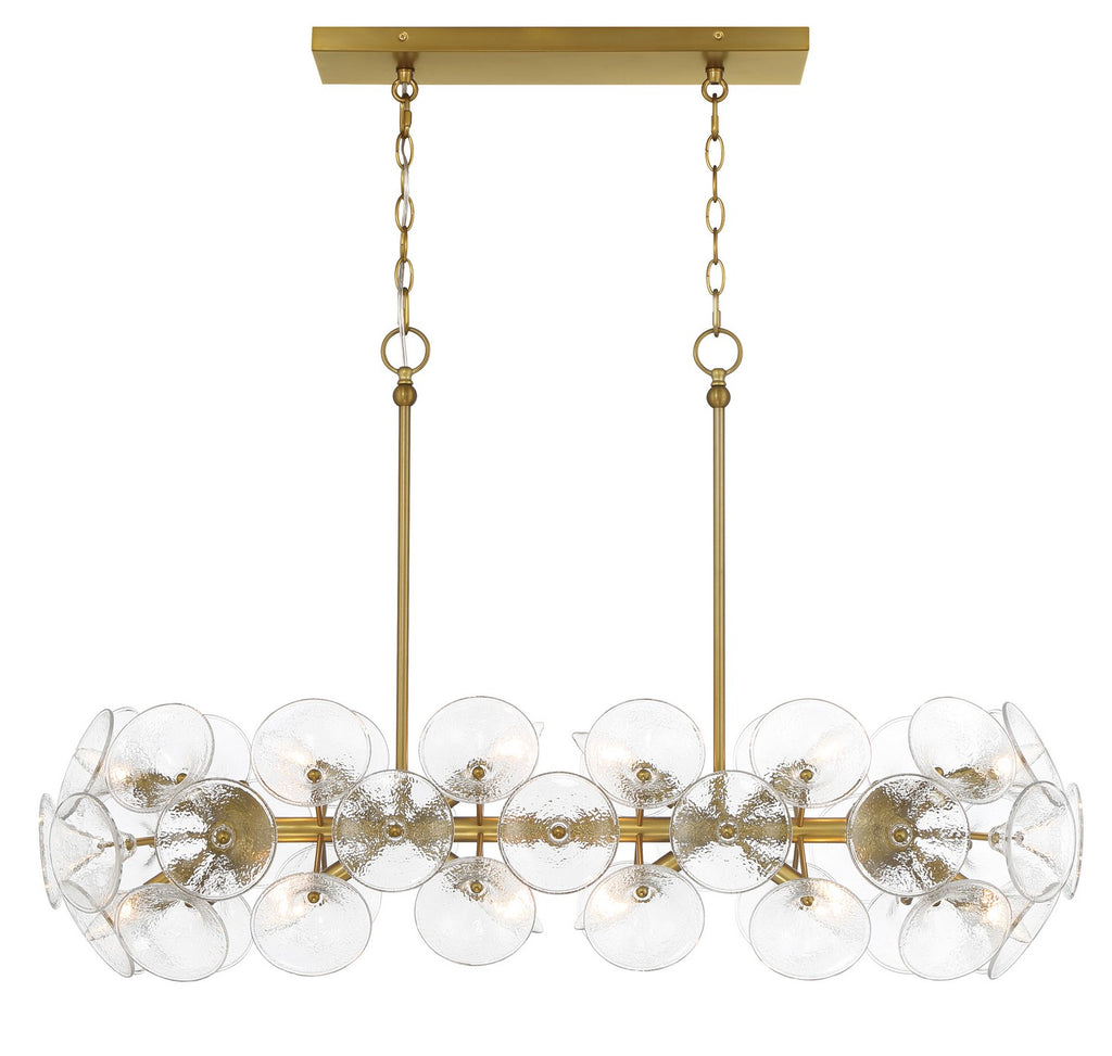 12 Light Island in Soft Brass Finish with Textured Clear Fluted Glass