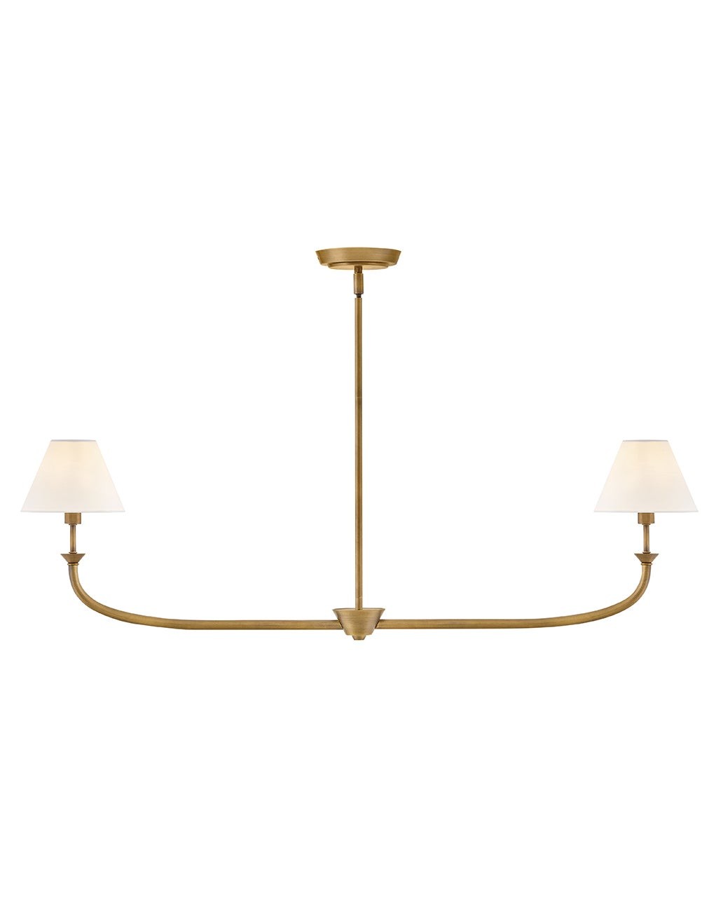 Inspired by traditional lighting styles, Greta complements its slim, contemporary silhouette with timeless details and classic finishes. Tapered, off-white linen shades softly diffuse light, filling your space with a warm ambiance.