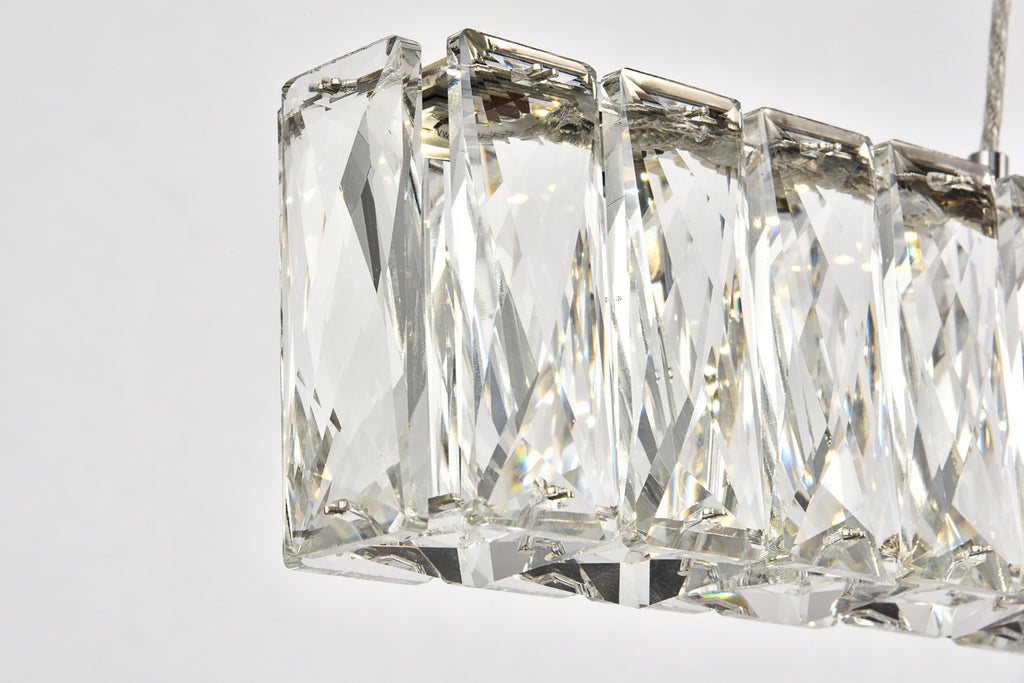 Diamonds are a girl's best friend, and sparkling Monroe collection hanging fixtures take Marilyn's famous lines to heart … for women and men alike. A minimal stainless-steel frame in a smooth chrome finish becomes dazzling when it is covered entirely with rectangular and square spectacularly faceted royal-cut clear crystals. The oblong design hangs from almost invisible wires with brilliant integrated LED shining unseen from within. Stunning when placed in a dining room, kitchen, living room, or bedroom.