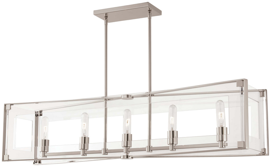 5 Light Island with Polished Nickel Finish and Clear Acrylic