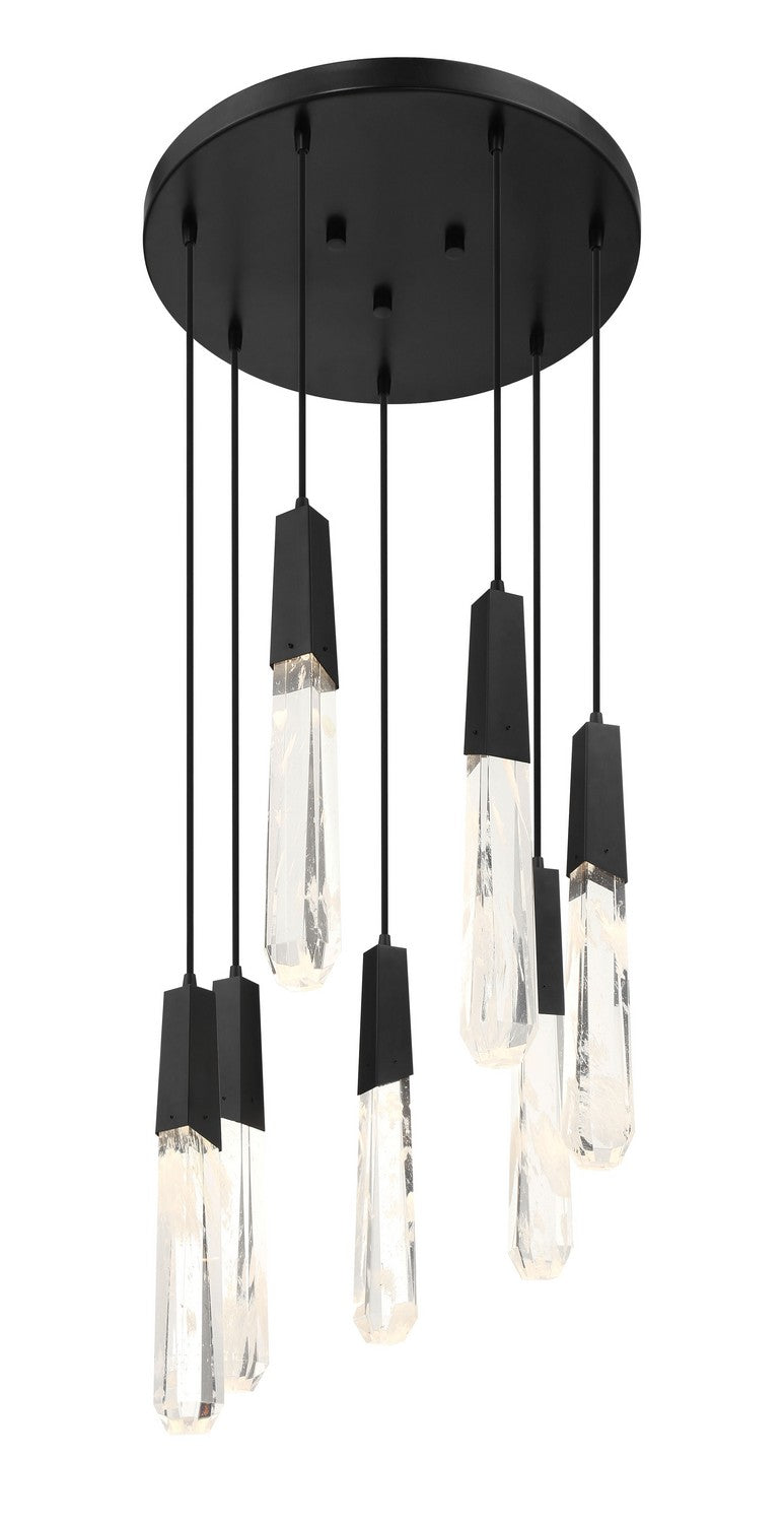 7 Light LED Pan Pendant in Coal Black with Faux Rock Crystal