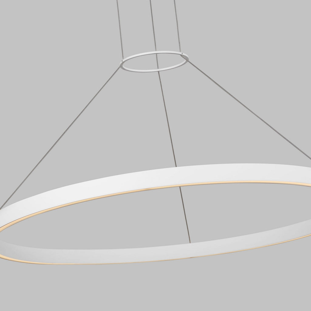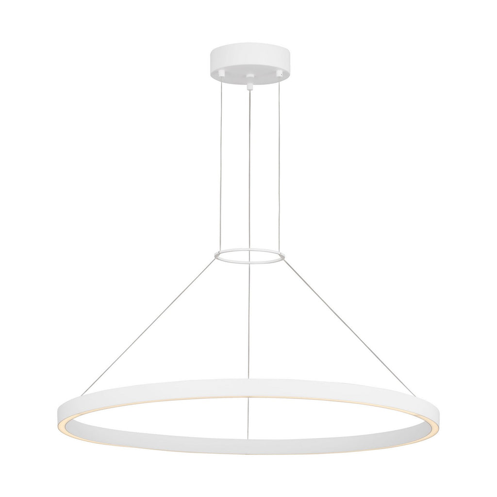 The Fiama chandelier by Sean Lavin is a transitional style chandelier but with an entirely modern twist. At its most unadulterated form the Fiama is a slender metal ring that houses gently diffused upward and downward firing LEDs, providing functional light with an ultra-chic aesthetic and are accented with metal spacers for a touch of contrast. This modern work of art is ideal for a wide range of lighting applications such as dining room lighting, foyer lighting and a host of commercial lighting applications. The Fiama pendant light ships with a fully dimmable integrated LED lamp.