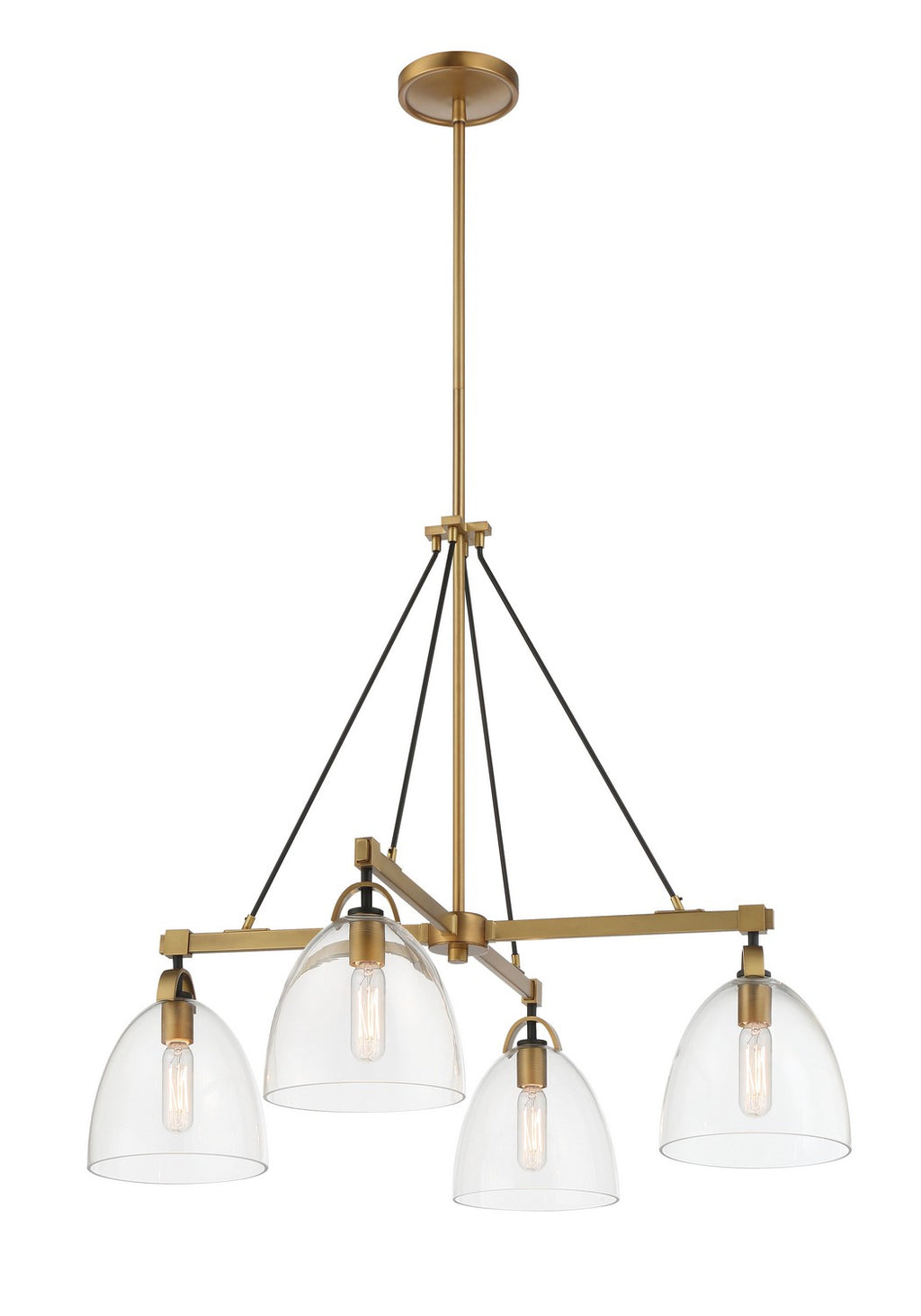 4-Light Chandelier - Legacy Brass and Matte Black with Clear Glass