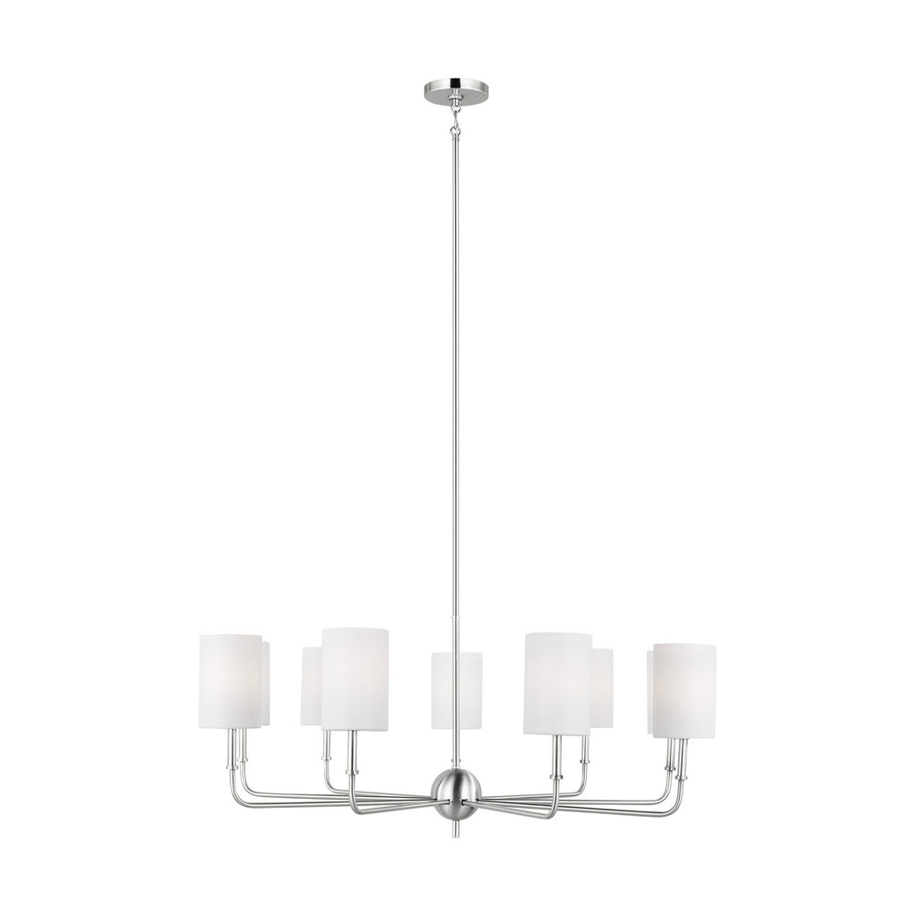 The Foxdale nine light single tier chandelier in brushed nickel silver encompasses the new traditional style with flawless execution. Refined and clean-lined, this classic silhouette is timeless without being stuffy. Perfectly transitional, this collection can be placed in any home regardless of style. Topped with White Linen Shades to complete the design.
