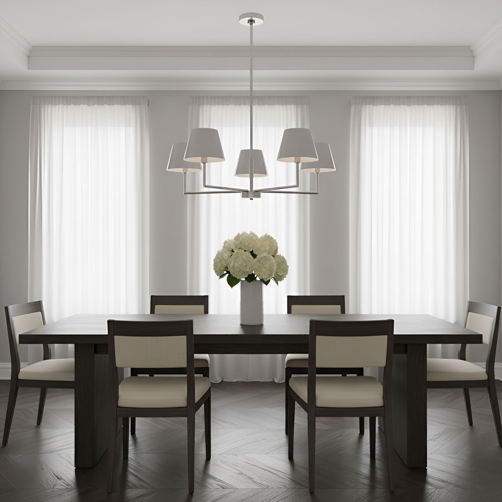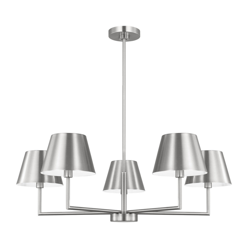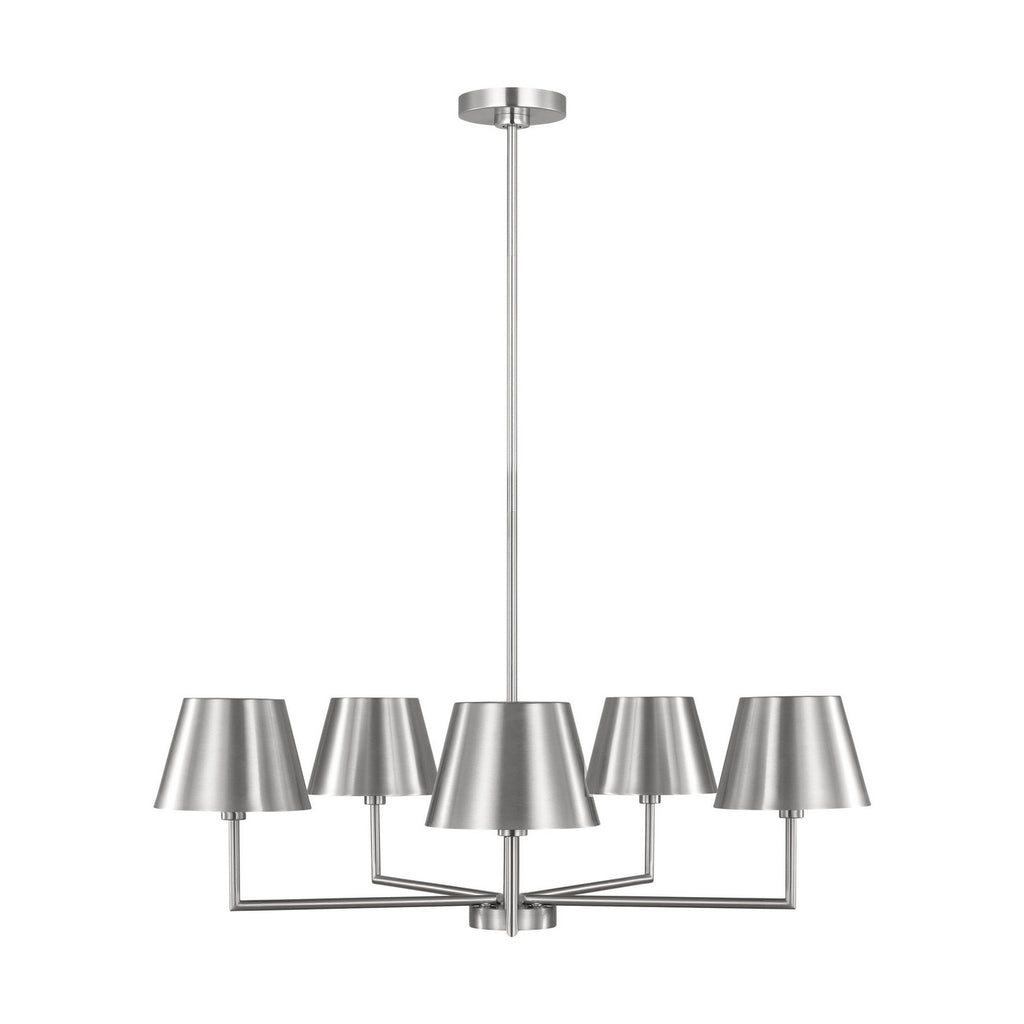Designed with versatility in mind, the Ender series by Drew & Jonathan offers clean lines that will enhance any interior. The transitional profile is updated with modern metal shades that create a contemporary look. This chandelier will illuminate kitchens and dining rooms.