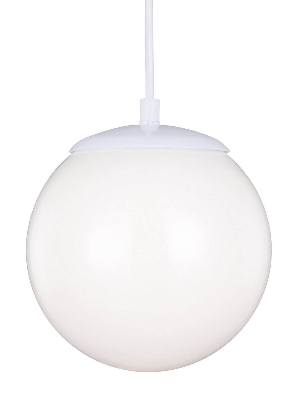 The Leo - Hanging Globe one light indoor pendant in white is an ENERGY STAR qualified lighting fixture that uses LED bulbs to save you both time and money. While hanging globes are one of lighting's hottest trends, Sea Gull's timeless Leo Collection has been around for 50 years! Constantly evolving with the times, these classic pendants are now offered with NEW Clear Seeded glass and in Satin Aluminum finish. Adjustable cloth cords allow for unlimited variations of hanging heights. All glass softly diffuse the light, each fixture comes with 54†of cuttable cord to customize the installation exactly to your needs. Easily convert every piece in the collection to LED by purchasing LED replacement lamps sold separately. All fixtures are qualified and California Title 24 compliant and damp rated for use in sheltered, damp environments like bathrooms, covered patios or porches.