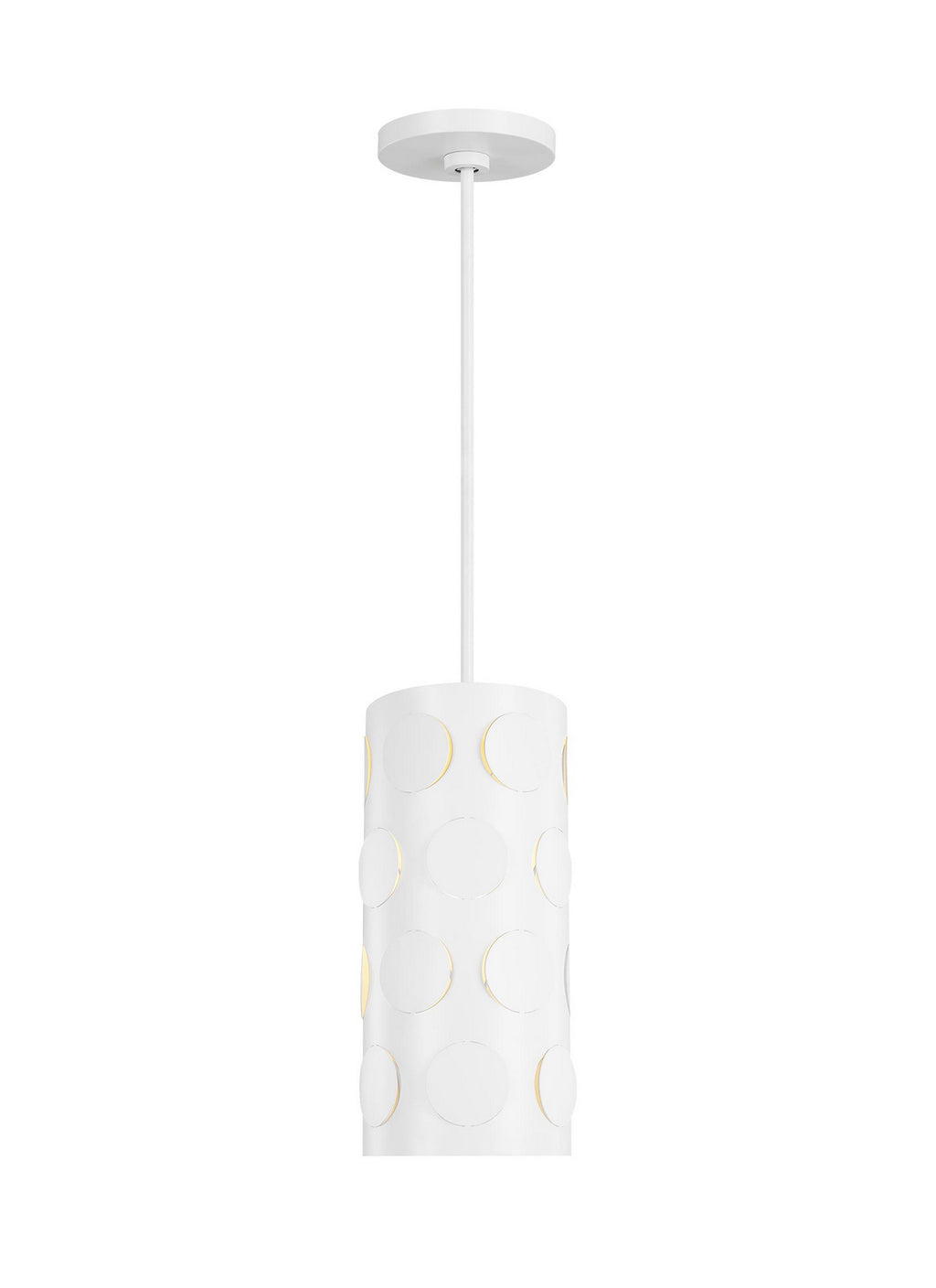 Dots are iconic to the kate spade brand—a simple and playful graphic motif. Dottie takes an iconic kate spade dot motif and cuts it into metal—creating a playful ambient light effect. A classic metal drum shade with an extra twist of perforated pattern. Use this fixture in place of any classic drum shade application, above a dining table, in a nook, or above an island.