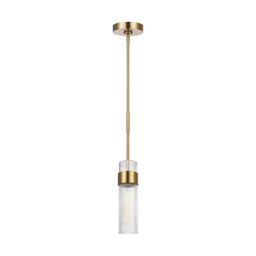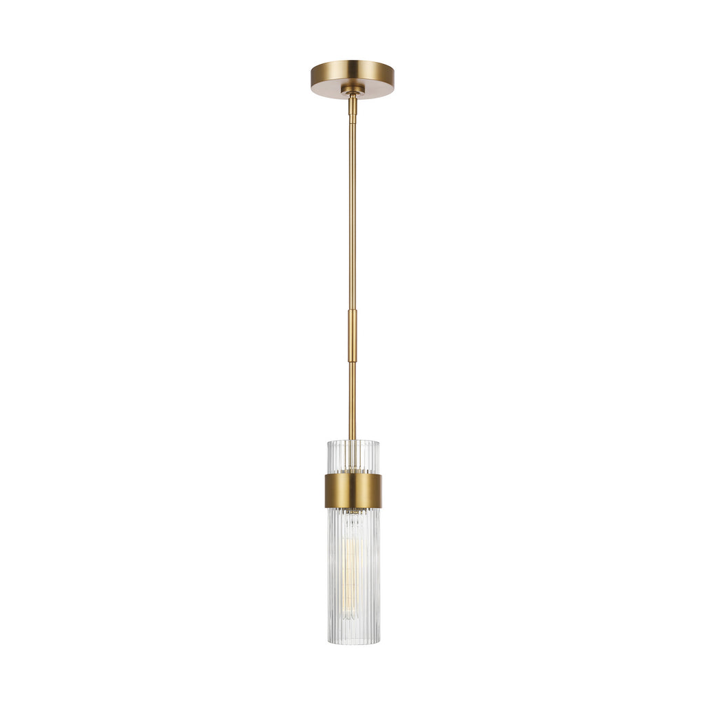 In the Geneva one light indoor pendant, a fluted shade forms an elegant, dynamic silhouette that's balanced by a strong frame of Burnished Brass or Polished Nickel.