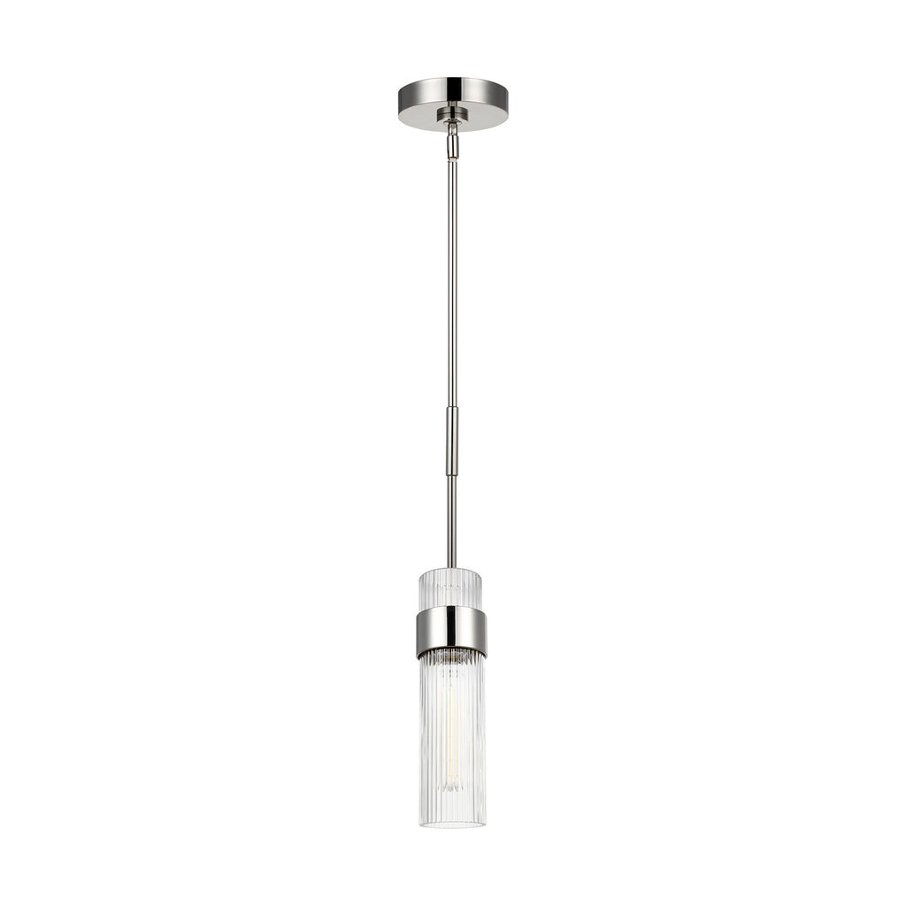 In the Geneva one light indoor pendant, a fluted shade forms an elegant, dynamic silhouette that's balanced by a strong frame of Burnished Brass or Polished Nickel.