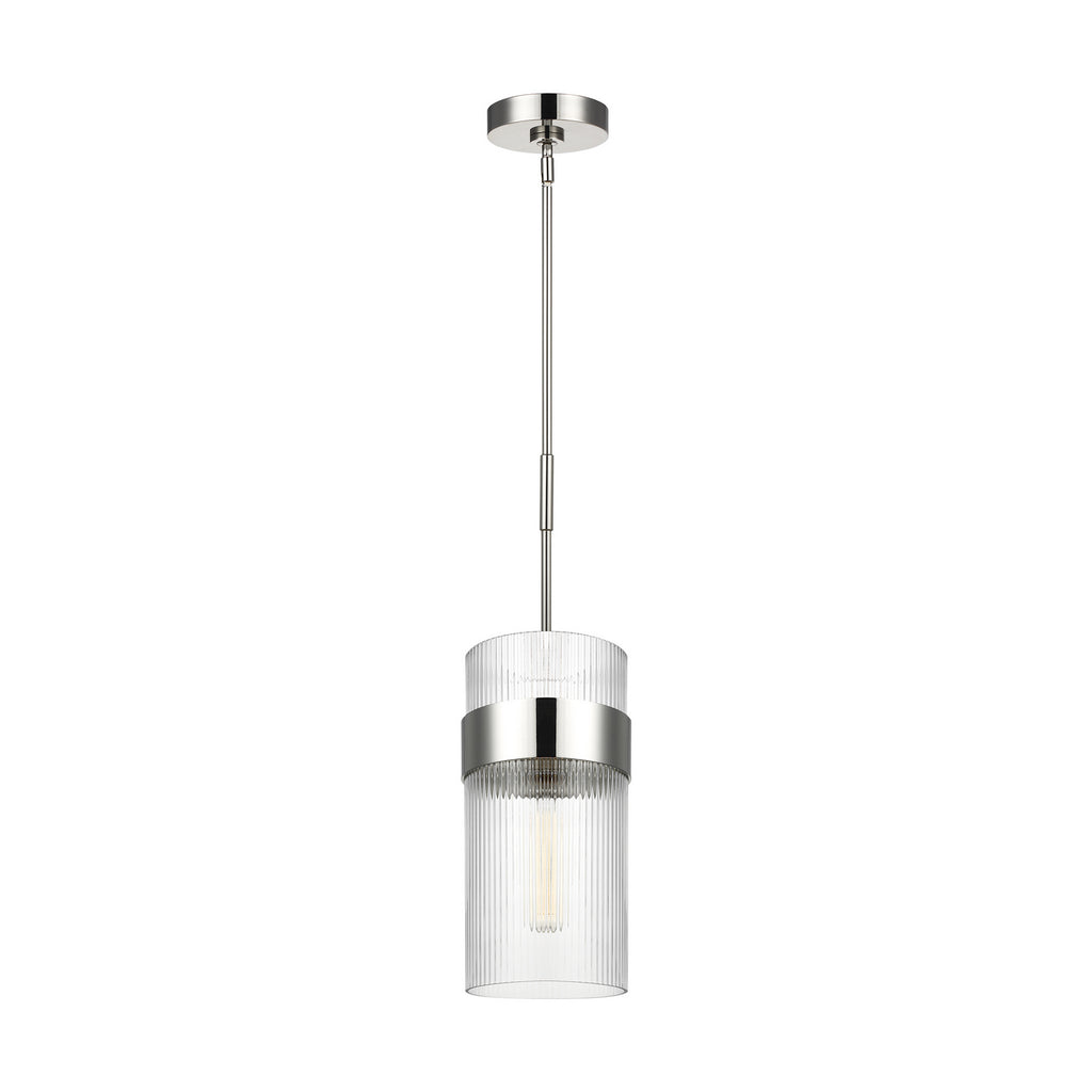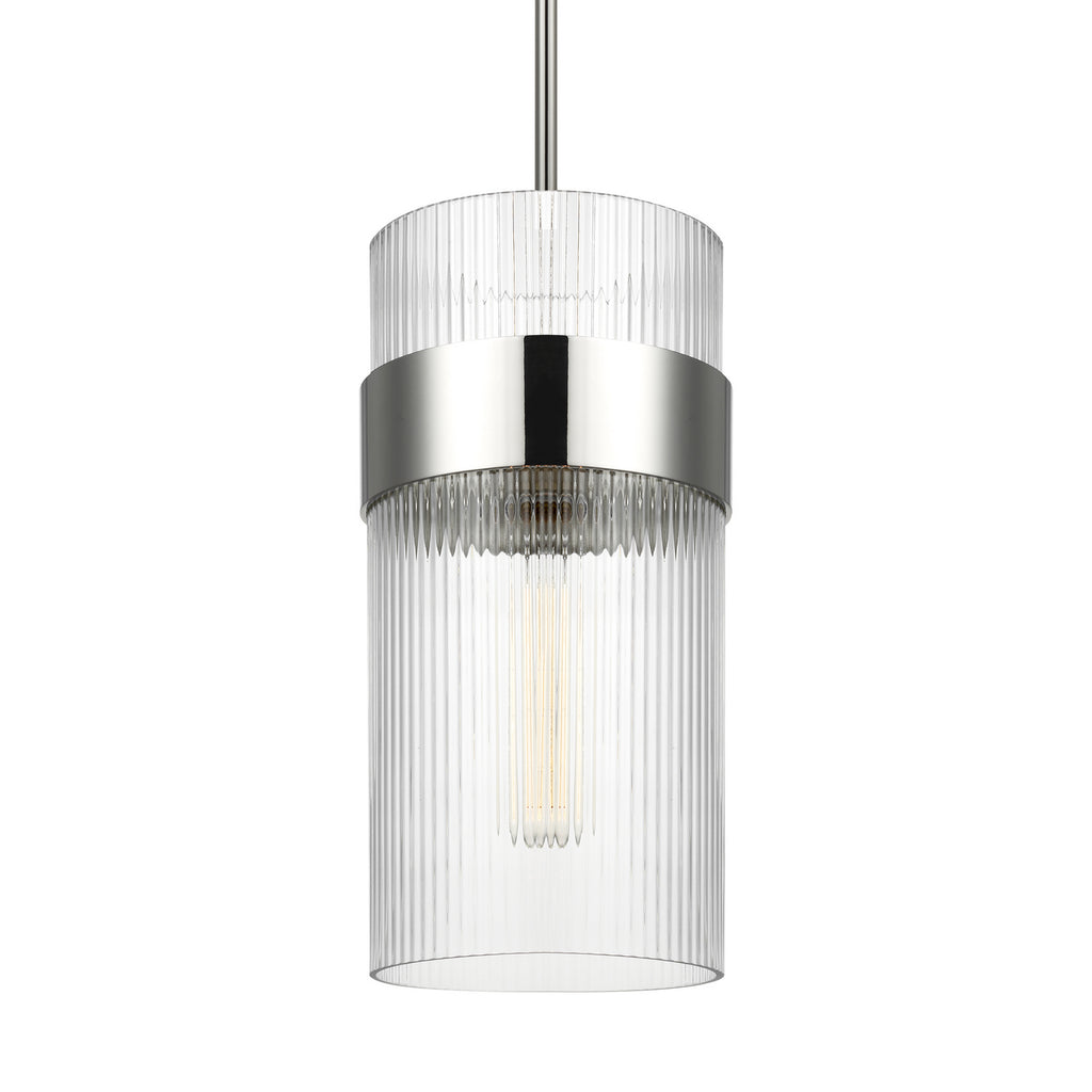 In the Geneva one light indoor pendant, a fluted shade forms an elegant, dynamic silhouette that's balanced by a strong frame of Burnished Brass or Polished Nickel.