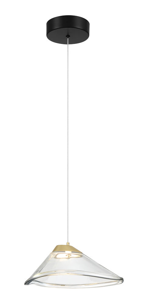 1 Light LED Mini Pendant in Coal and Sun Gold Finish with Tinted Pressed Glass