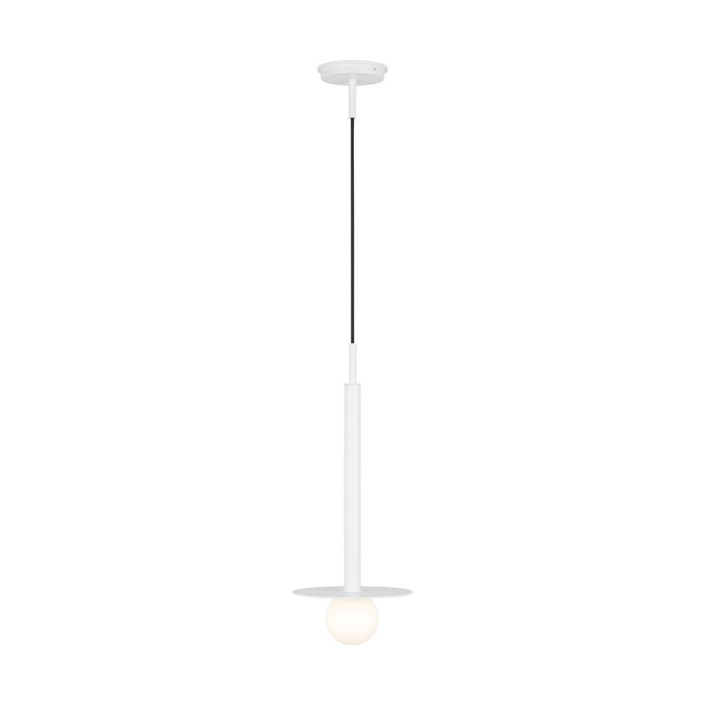 Nodes task, ceiling and wall lighting is minimal yet bold, highlighting Kelly's distinctive juxtaposition of mixed-materiality and curvilinear form. Light radiates from milk glass globes set against metal discs. All fixtures can be used or without the discs. The cast canopy is available in modern finishes. Hanging fixtures within this family feature black fabric cords, while pivot sconces can be cord and plug or hard wire.