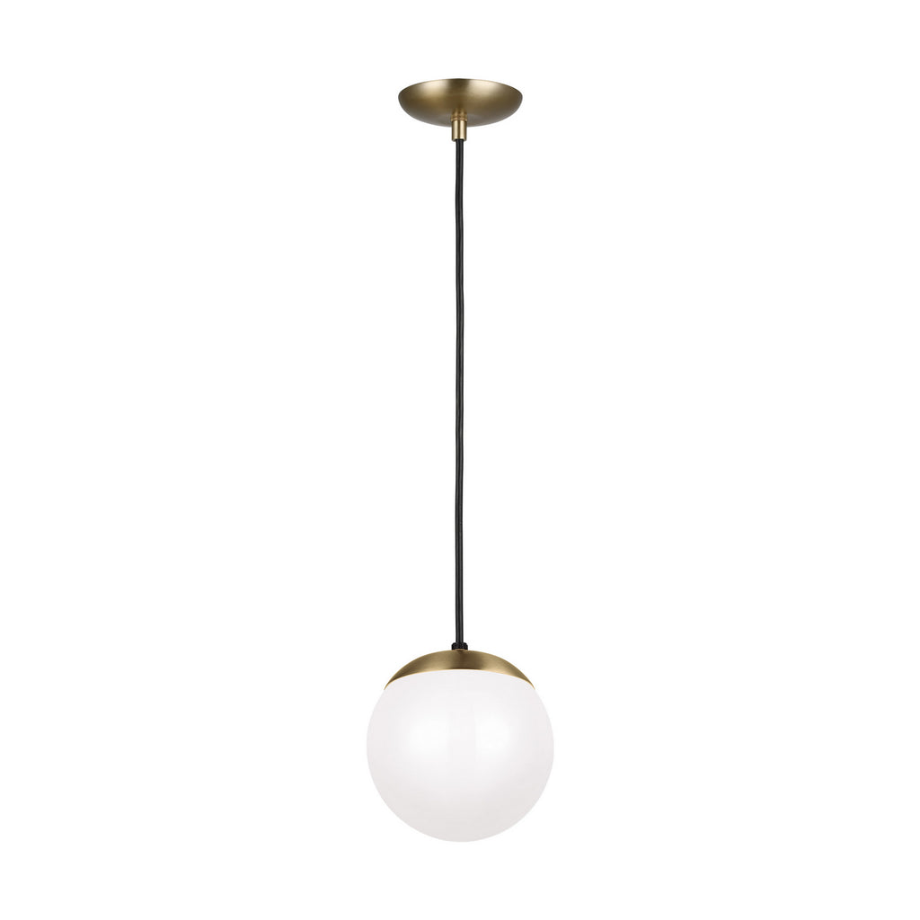 The Leo - Hanging Globe one light indoor pendant in satin brass supplies ample lighting for your daily needs, while adding a layer of today's style to your home's décor. While hanging globes are one of lighting's hottest trends, Sea Gull's timeless Leo Collection has been around for 50 years! Constantly evolving with the times, these classic pendants are now offered with NEW Clear Seeded glass and in Satin Aluminum finish. Adjustable cloth cords allow for unlimited variations of hanging heights. All glass softly diffuse the light, each fixture comes with 54†of cuttable cord to customize the installation exactly to your needs. Easily convert every piece in the collection to LED by purchasing LED replacement lamps sold separately. All fixtures are qualified and California Title 24 compliant and damp rated for use in sheltered, damp environments like bathrooms, covered patios or porches.