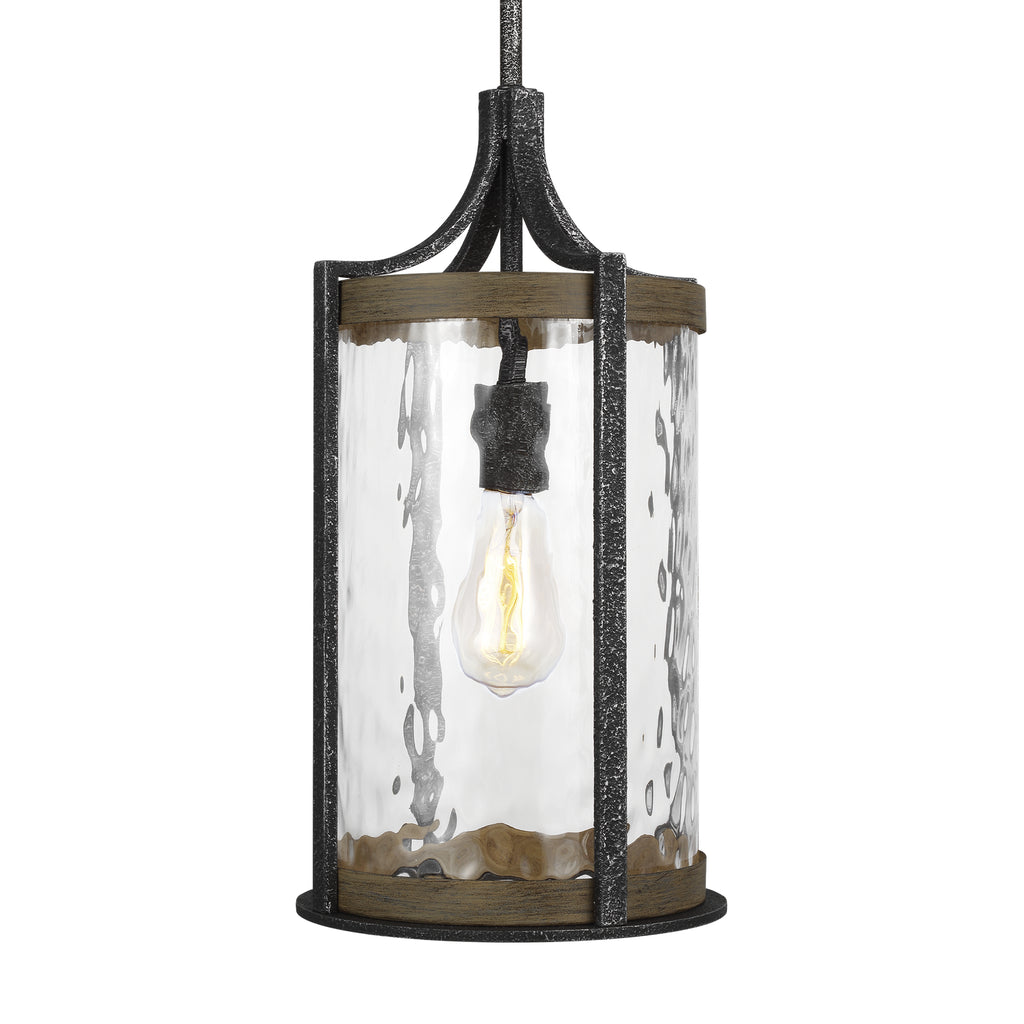 Influenced by both rustic and industrial design, the transitional Angelo chandelier collection by celebrates the beauty of imperfection and the visual impact of mixed materials to create an overall rugged look. The cylindrical Clear Thick Wavy glass shades complement the two-toned finish of Distressed Weathered Oak on the outer structures and a new pitted, richly textured Slated Grey Metal finish on the sloping arms for a rustic but tailored look. Perfect as foyer lighting, living room lighting, or paired over a dining room table, and the largest fixture will be the crowning touch to any great room.