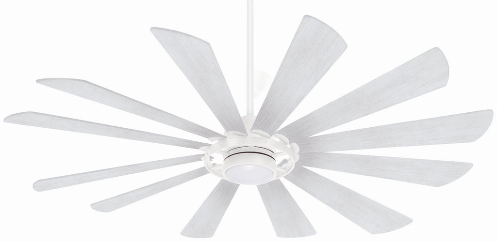 65" 12-Blade LED Ceiling Fan in a Textured White Finish with Bleached Ashwood Blades and Etched Lens