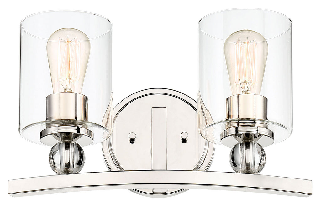 2 Light Bath in Polished Nickel Finish with Clear Glass