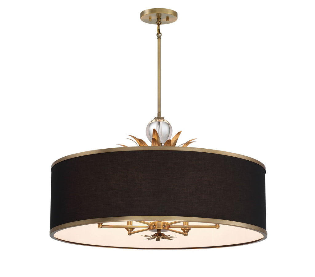 6 Light Pendant in Natural Brushed Brass Finish and Fabric Shade