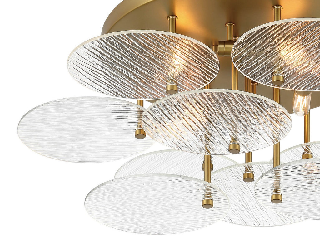 4 Light Flush Mount in Soft Brass Finish with Clear Water Glass