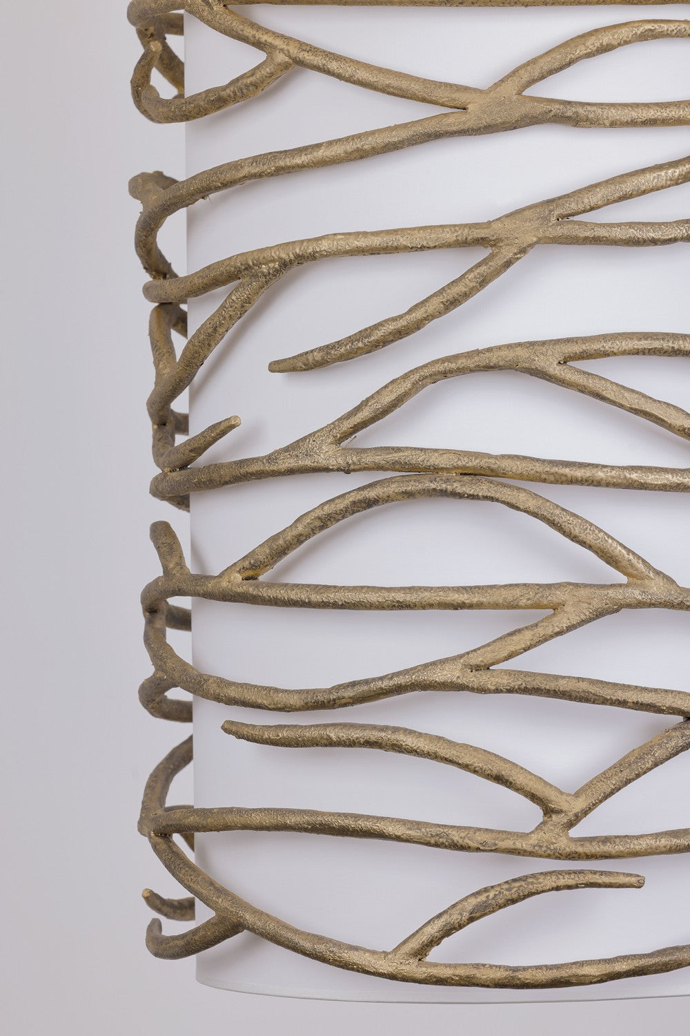 9 Light Foyer Pendant in Ashen Gold with White Fabric Shade