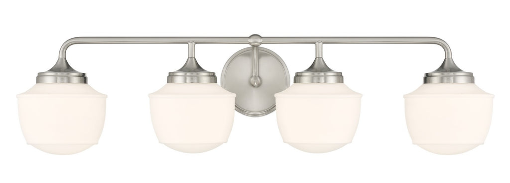 4 Light Bath Vanity in Brushed Nickel, Reversible, with Etched Opal Glass
