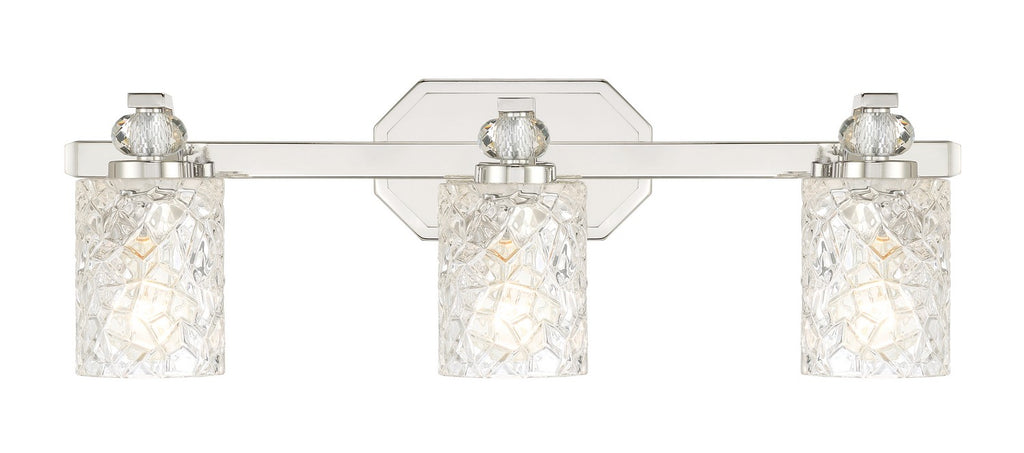 3 Light Bath Vanity in Chrome, Reversible, with Clear Pressed Glass