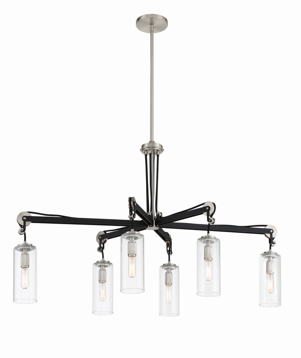 6 Light Island in Brushed Nickel and Coal Finish with Clear Glass