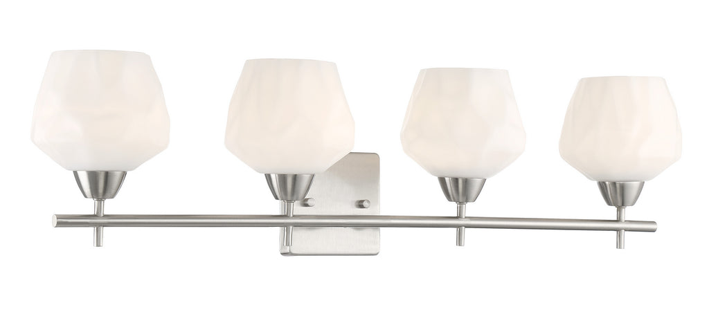 4 Light Bath in Brushed Nickel Finish with White Glass